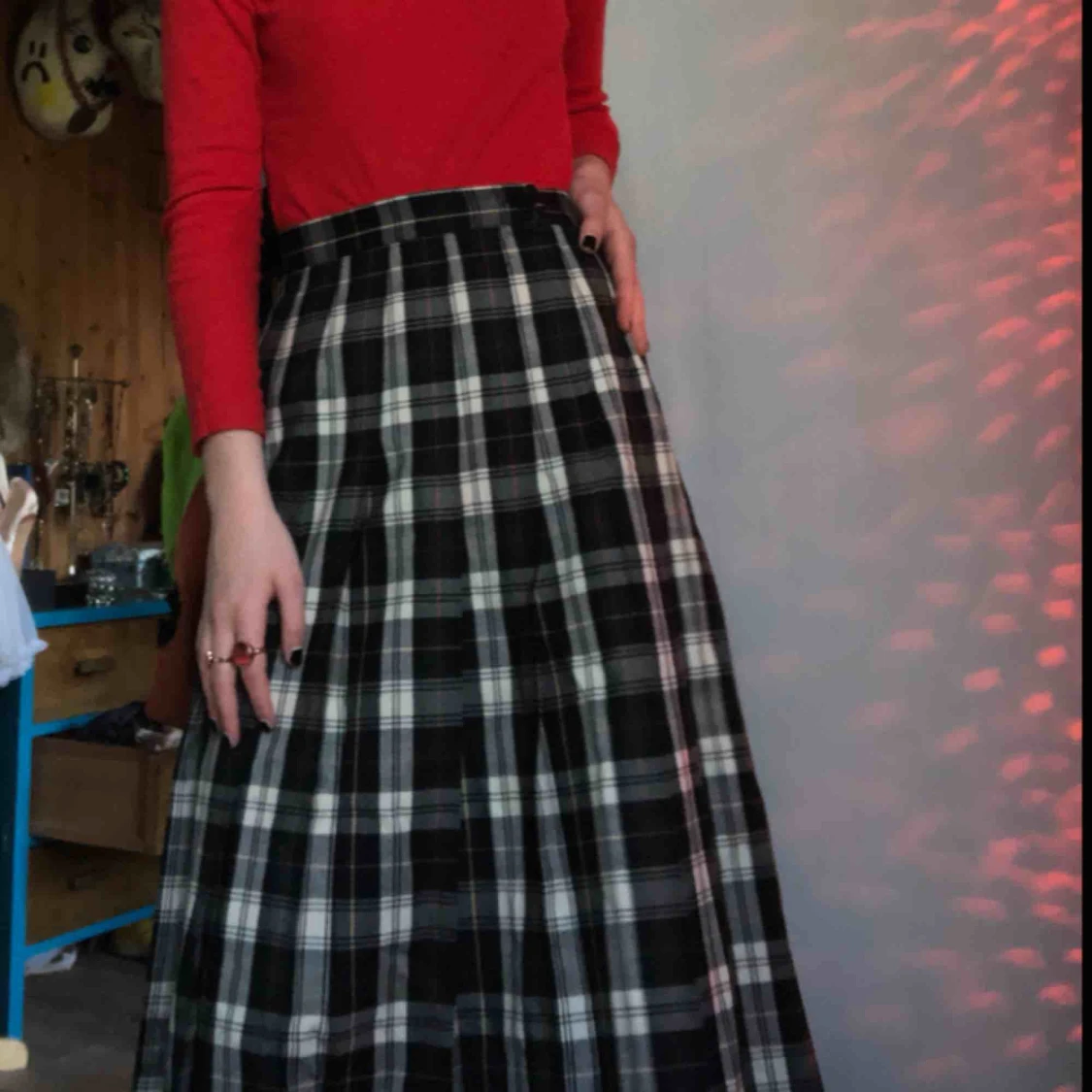Lång plädkjol, slutar ungefär mitt på smalbenet på mig om jag har den knäppt mitt i midjan (är 170cm). Möts upp i Gbg, annars står köparen för frakten xoxo