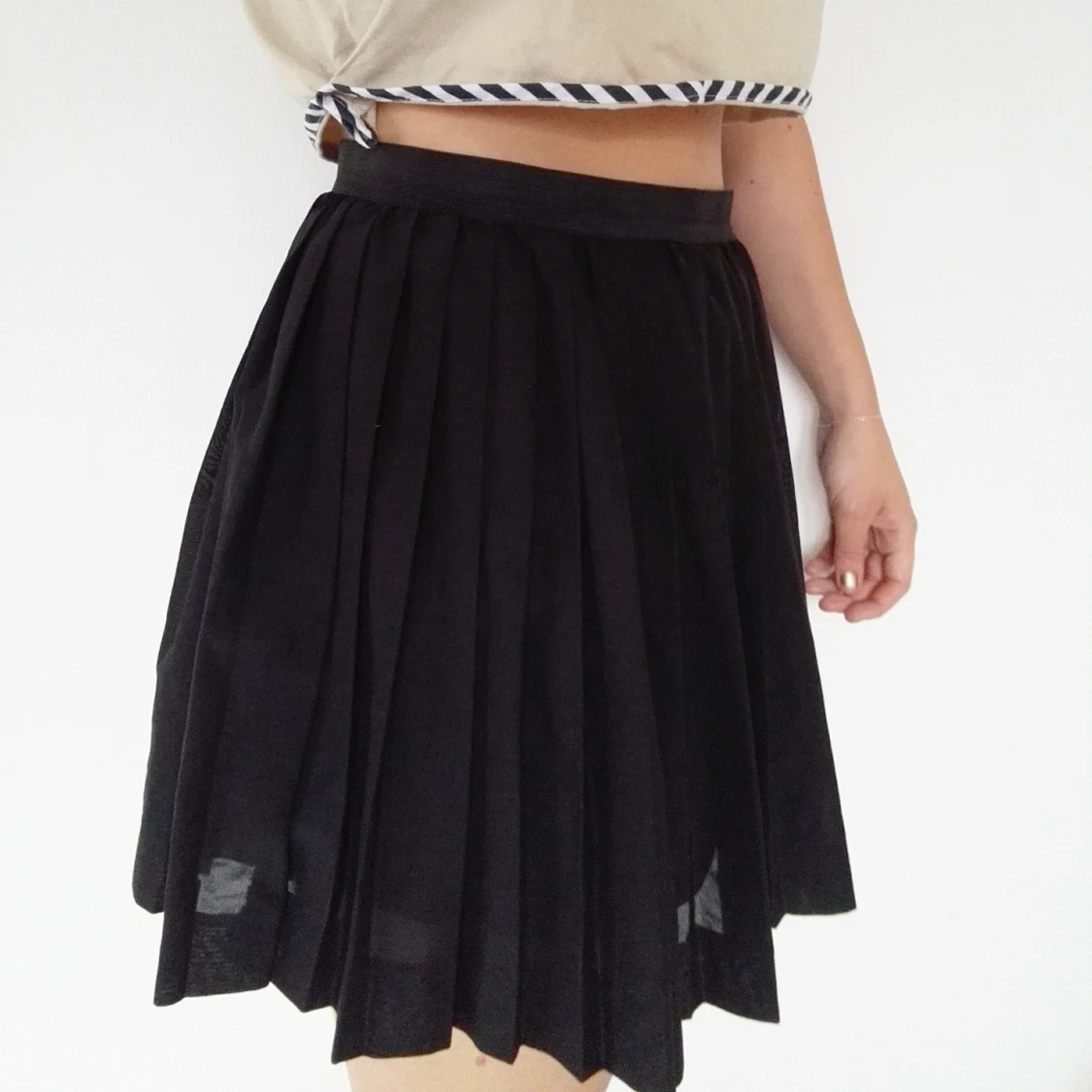 Supersnygg plisserad kjol! Mycket bra skick på kjolen men bandet i midjan är lite uttöjt, inget som syns eller stör så mkt dock! Längden går till mitten av låret ungefär.