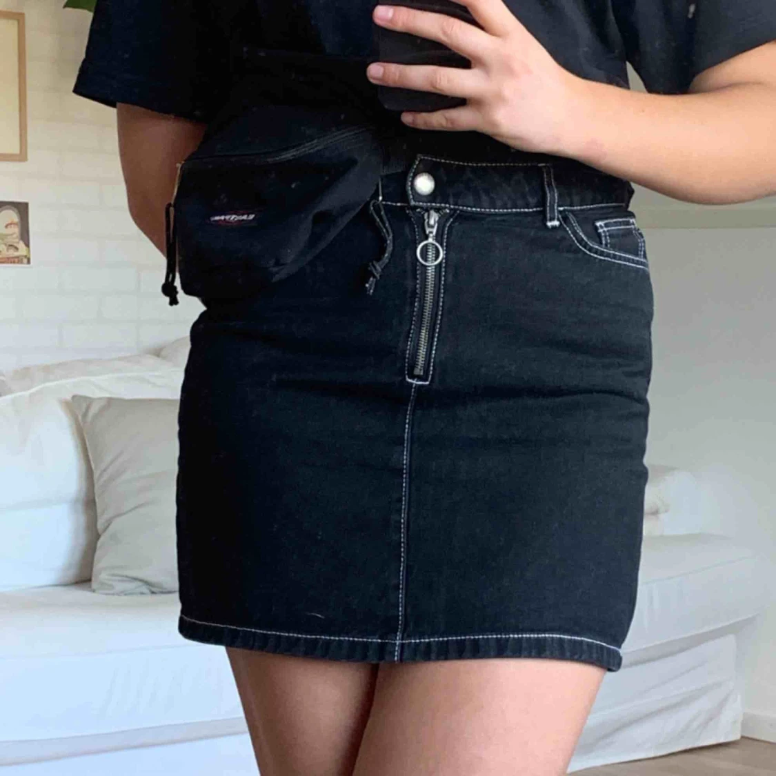 Svart kjol med vita konstratsömmar. Frakt inkluderad