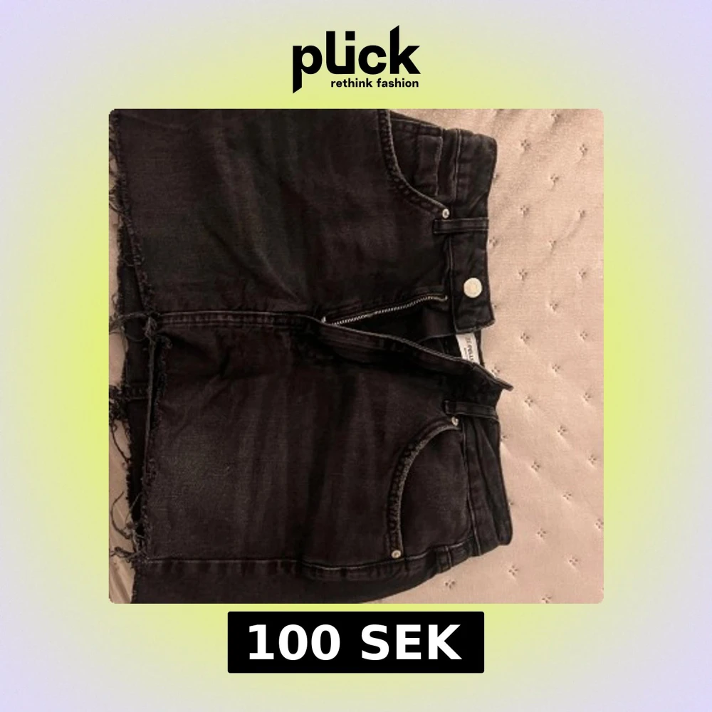 Snygg svart jeanskjol från Pull&Bear med rå kant och dragkedja fram. Kjolen har klassiska fem fickor och en knappstängning i midjan. Perfekt för sommaren!!!