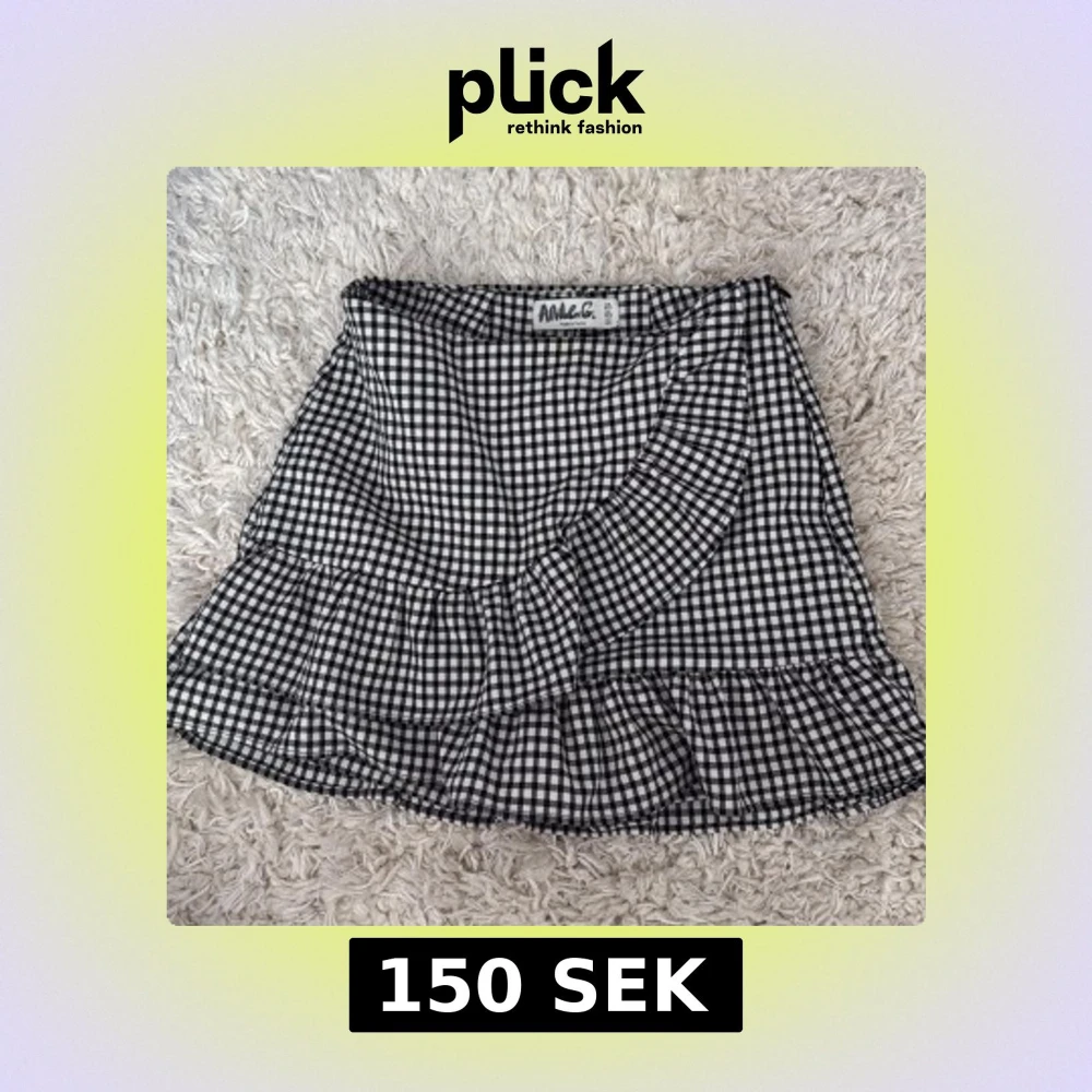 Supersöt svartvit rutig kjol från Pull&Bear i storlek XS. Kjolen har volangkant nertill och klassiskt rutmönster. Materialet känns lätt och skönt mot huden. Har shorts under o dragkedja på sidan!