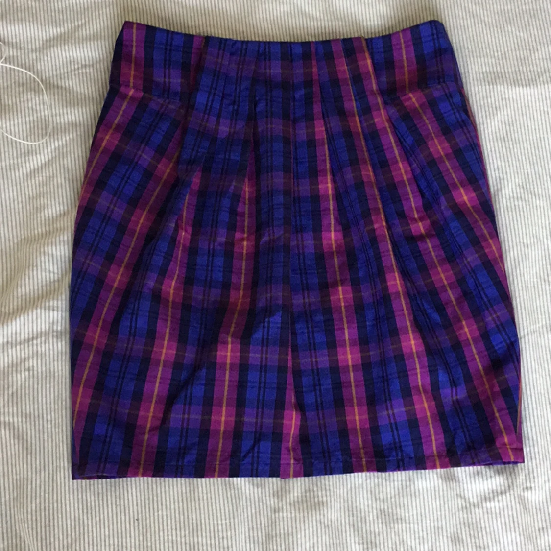 Rutig kjol från Monki i storlek M som inte säljs längre, knappt använd och i bra skick frutom en söm (bild 3). Den är räfflad på framsidan och har dragkedja och knappar på baksidan.