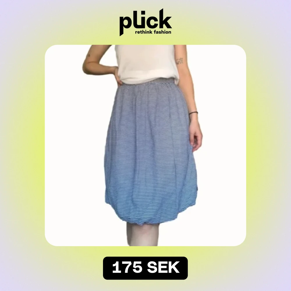 En blåvit randig midi-kjol från 80-talet med dragkedja och knapp. Jätte bra skick