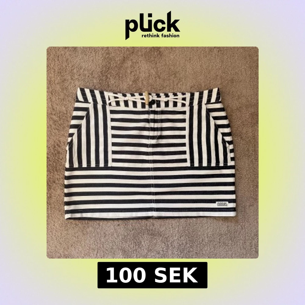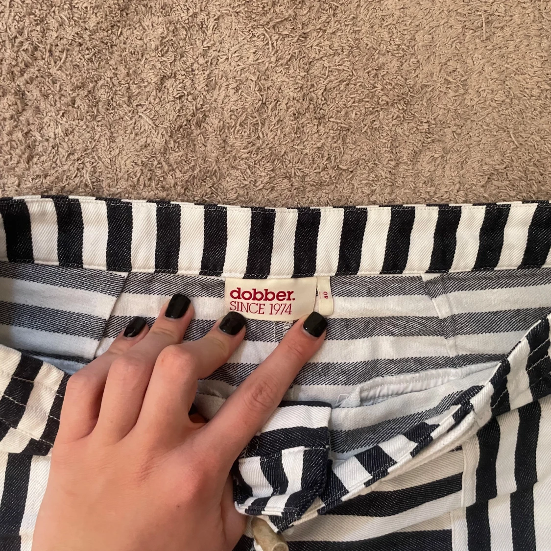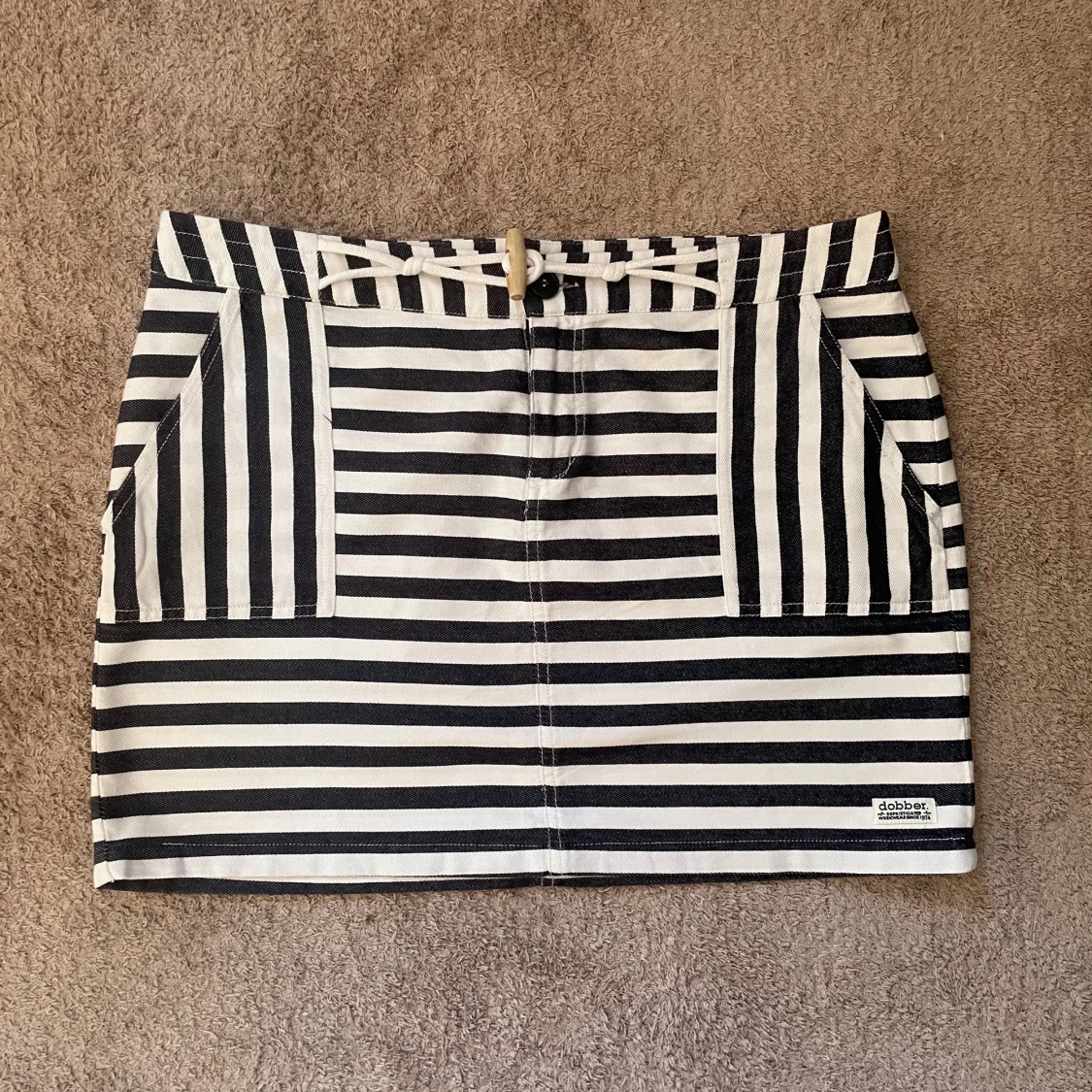 Snygg kortkjol från Dobber med svartvita ränder i olika riktningar. Kjolen har två stora fickor fram och bälteshällor i midjan. Perfekt för dig som gillar en cool och stilren look med lite edge.
