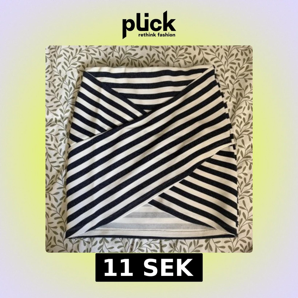 Snygg kort omlottkjol från C i svart och vitt med breda horisontella och diagonala ränder. Kjolen har en omlott-look framtill och är tillverkad i ett stretchigt, ribbat material som sitter tajt och markerar midjan.