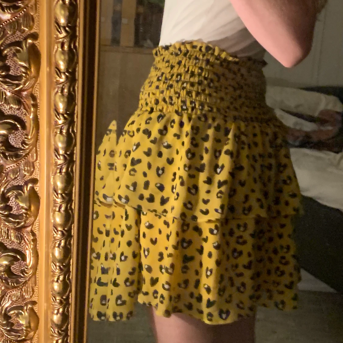 Fin gul volangkjol med leopardmönster från ”Retro & Icone. Kjolen har strl L men den passar mig som vanligtvis har strl xs/34. Aldrig använd. Frakt - 66kr🐆🐆