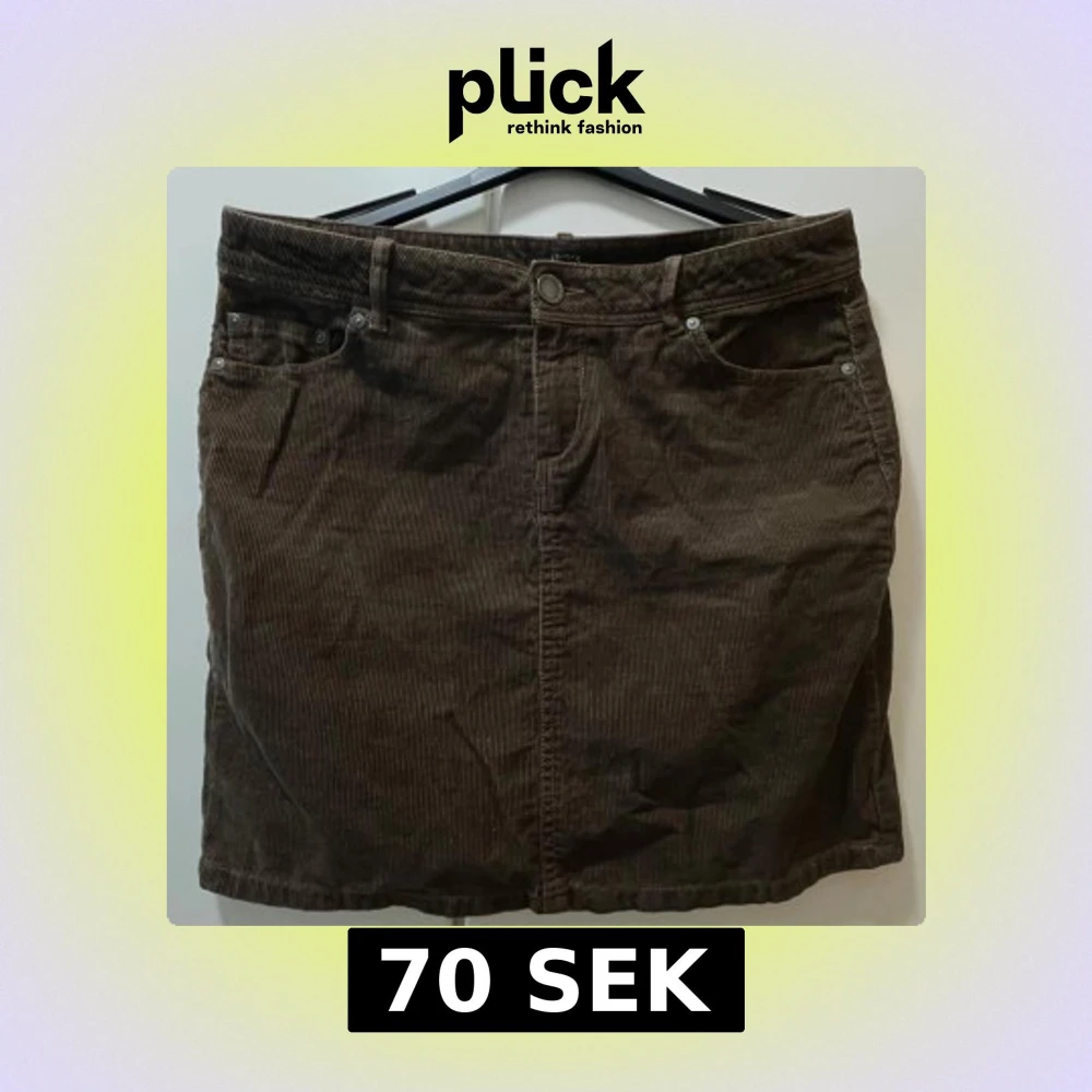 Snygg brun manchesterkjol från Lindex med klassisk femficksdesign och bälteshällor. Kjolen har jeansinspirerade detaljer med nitar och knapp framtill. Perfekt för dig som gillar retrovibbar och vill ha en cool vardagslook.
