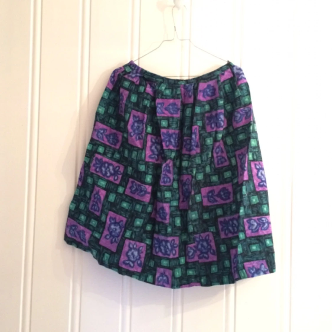vintage kjol i lila och grön-toner, med knappar i front och som får fina veck från midjan och ned. knappt använd av mig, köpte från en annan tjej som heller inte hade använt den. med andra ord, sen är i bra skick! skickar gärna måtten