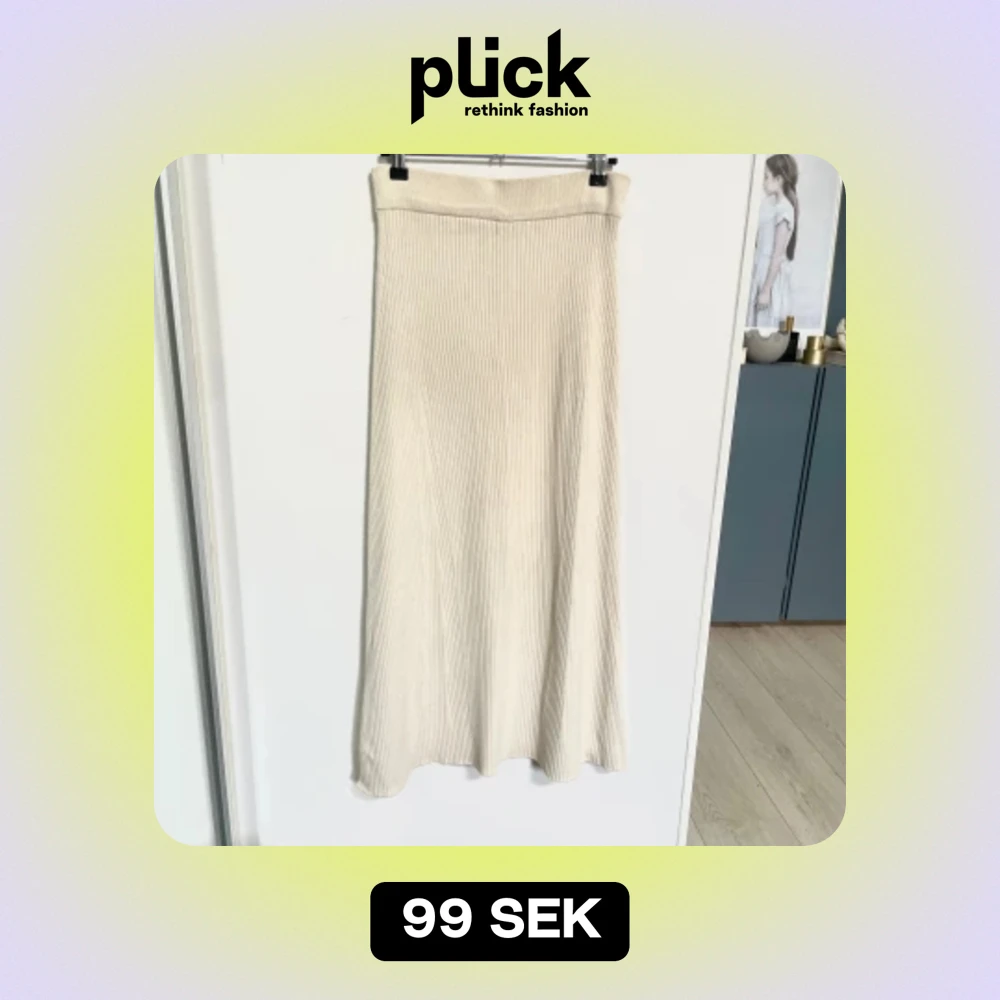 En ribbstickad långkjol från Gina Tricot, del av ett set med tillhörande linne. Säljer även det matchande linnet.