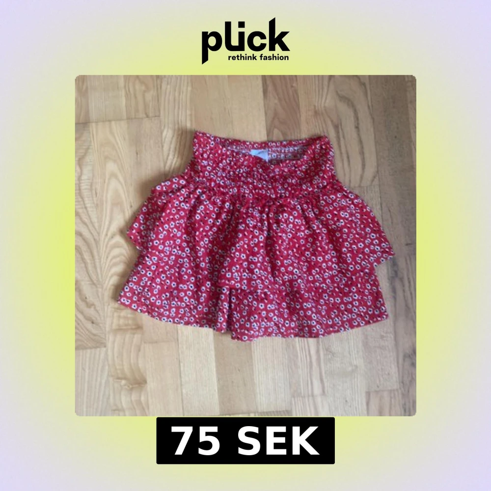 Supersöt röd kjol från Zara med små vita blommor och volanger. Kjolen har en smockad midja som gör den bekväm och sitter snyggt.