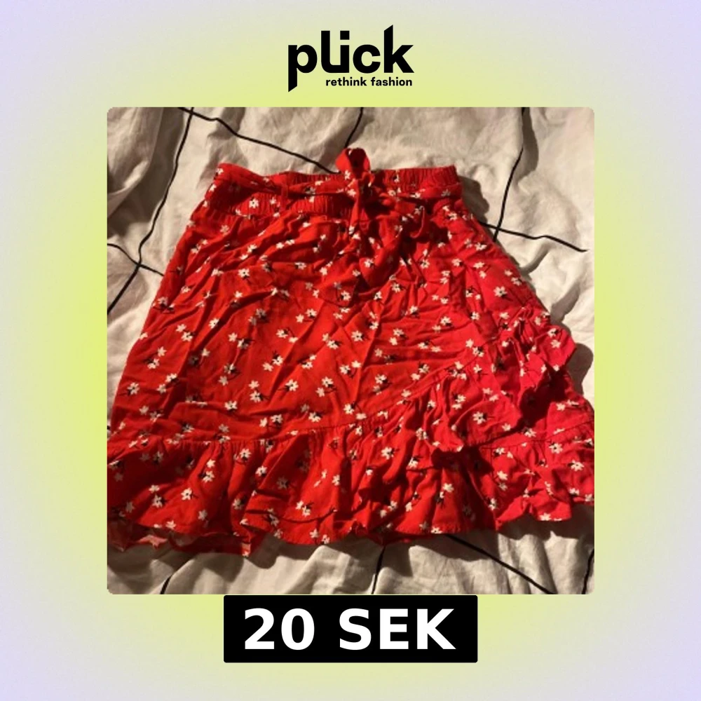 Superfin röd kortkjol med vita blommor, volangkant och knyt i midjan. Kjolen har omlottkänsla och är perfekt för sommarens alla äventyr. Lätt och luftig i materialet❣️❣️