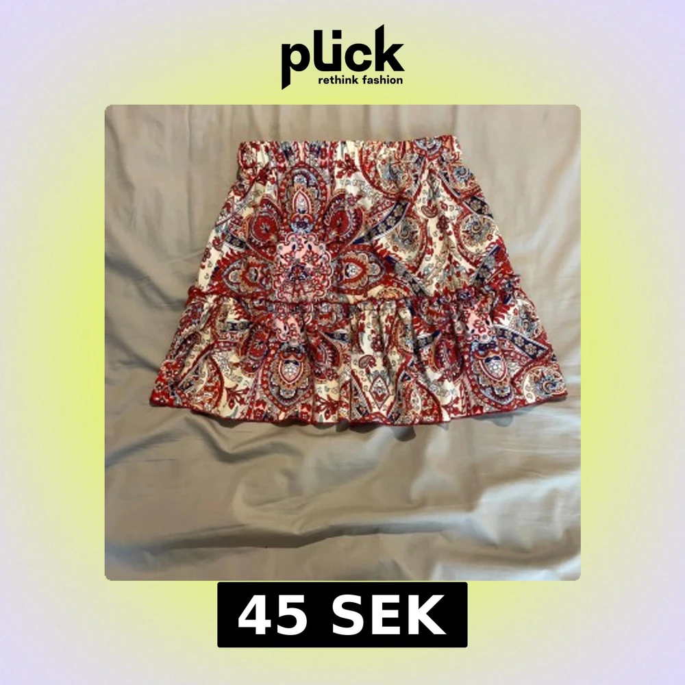 Superfin kortkjol med volang och paisleyinspirerat mönster i rött, blått, beige och rosa. Kjolen har resår i midjan och är gjord i ett lätt och mjukt material som känns skönt mot huden. Perfekt för dig som gillar färg och mönster!