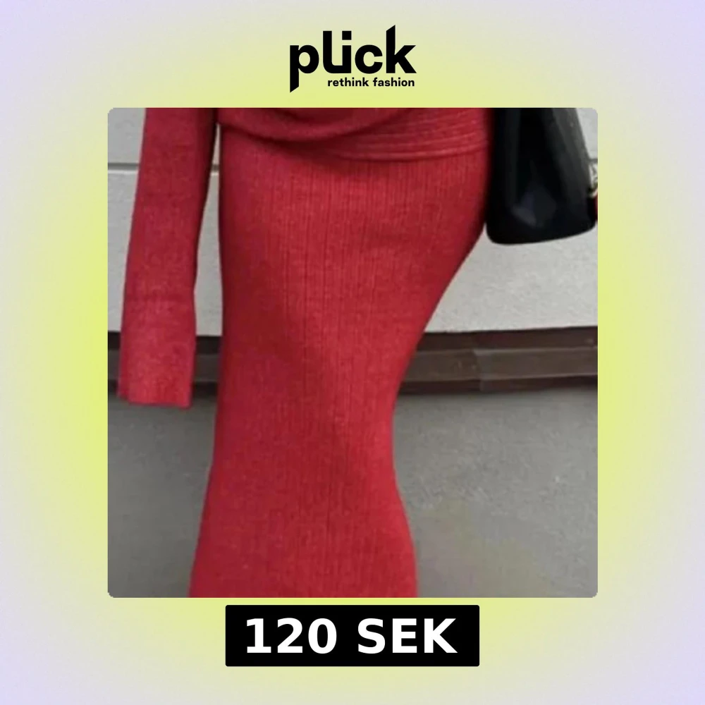 Snygg röd långkjol i ribbat material med figurnära passform. Kjolen har en enkel och stilren design som gör den lätt att matcha med olika toppar och accessoarer.
