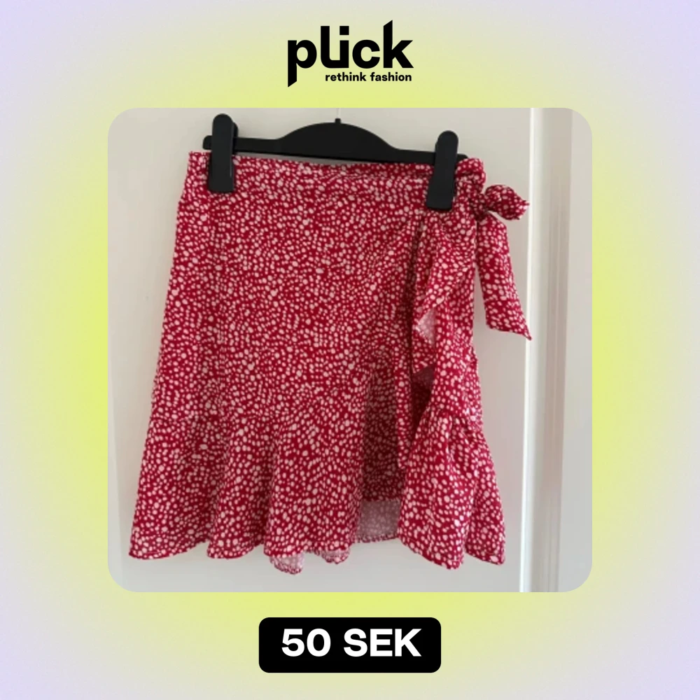 Säljer en superfin röd omlottkjol med vita prickar. Kjolen har en söt knytning i sidan och är perfekt för sommardagar. Materialet känns lätt och luftigt, vilket gör den idealisk för varma dagar. Den har en volangdetalj som ger en extra touch av stil!