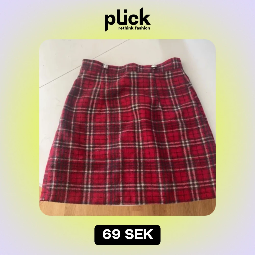Rödrutig kjol i ett rätt så tjockt tyg. Väldigt fin men för liten för mig