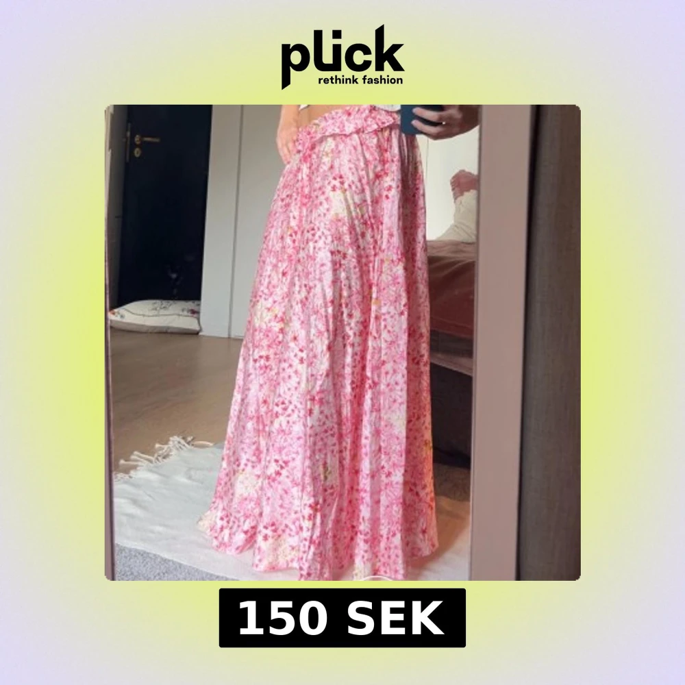Superfin helt ny långkjol från H&M i rosa med blommigt mönster och volangkant upptill. Kjolen har knytband i midjan och är gjord i ett lätt och luftigt material, perfekt för varma dagar. Aldrig använd.