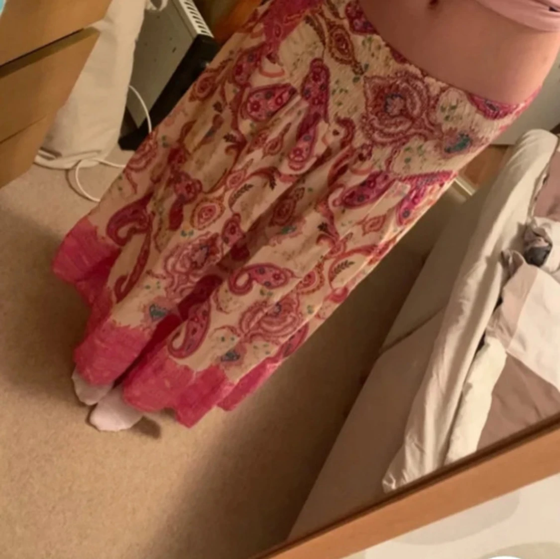 Säljer en superfin kjol från Luluia/Marta! Den har ett jättefint färglagt mönster som passar perfekt till vardags och finare tillfällen, Obs! Om du ser en annan likadan bild på kjolen är det pga av mitt gamla konto som raderades som jag inte kommer åt så kan ej svara där. Finns på mitt vinted konto också om ni vill köpa billigare!