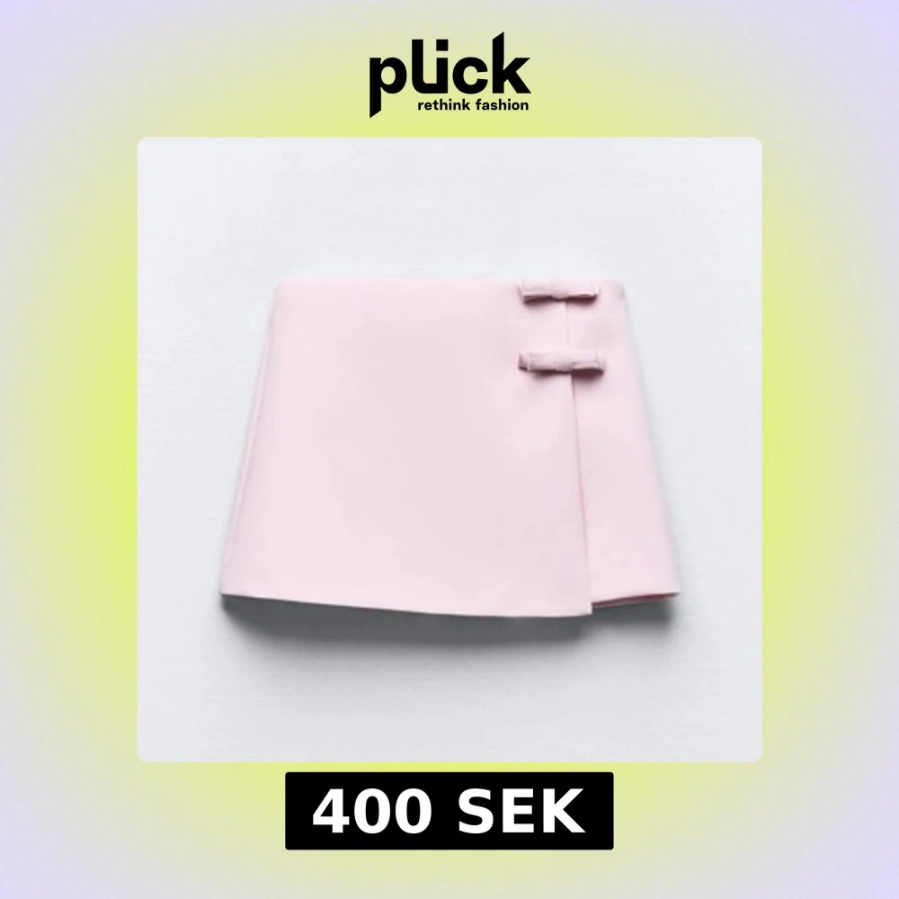 Söt rosa omlottkjol med dekorativa rosetter framtill. Har ett inbyggda shorts som man kan se på andra bilden vilket är baksidan! Helt ny med prislappen kvar💕