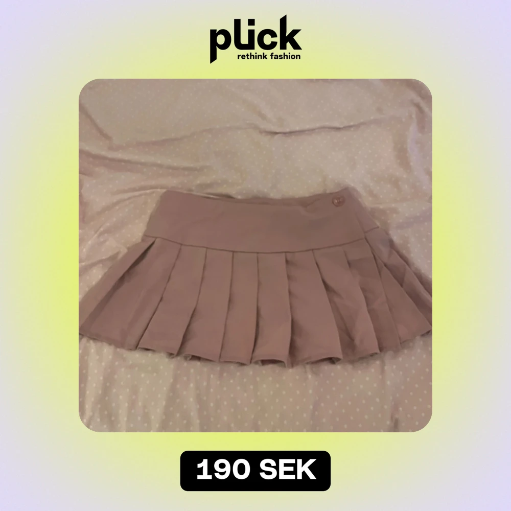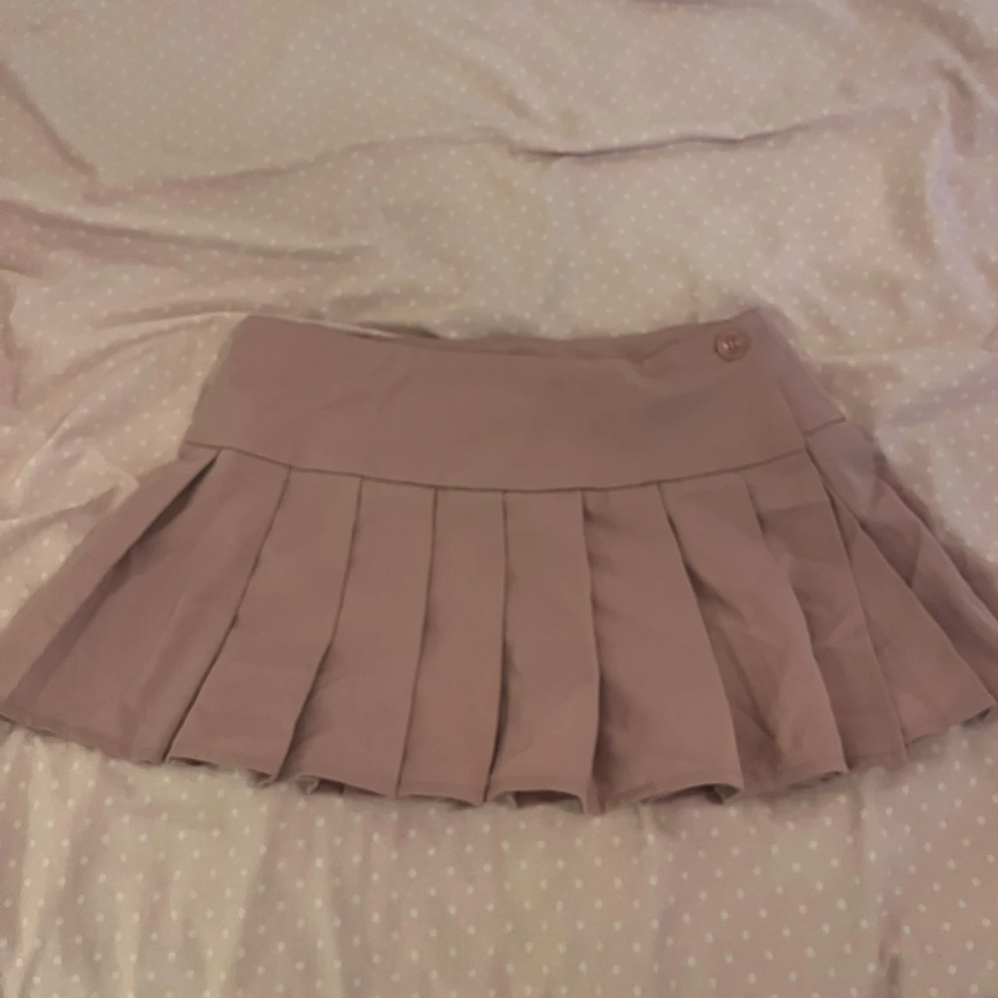 Säljer en superfin rosa plisserad kortkjol. Den har en knappdetalj i midjan.