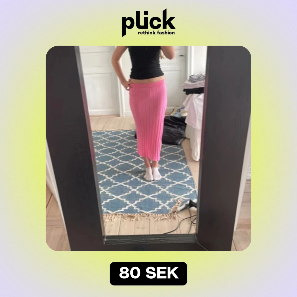 Det är en ribbad midi kjol. Jag säljer den då den inte har kommit till användning. Den är super snygg och har ett slit på sidan.
