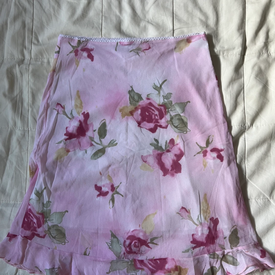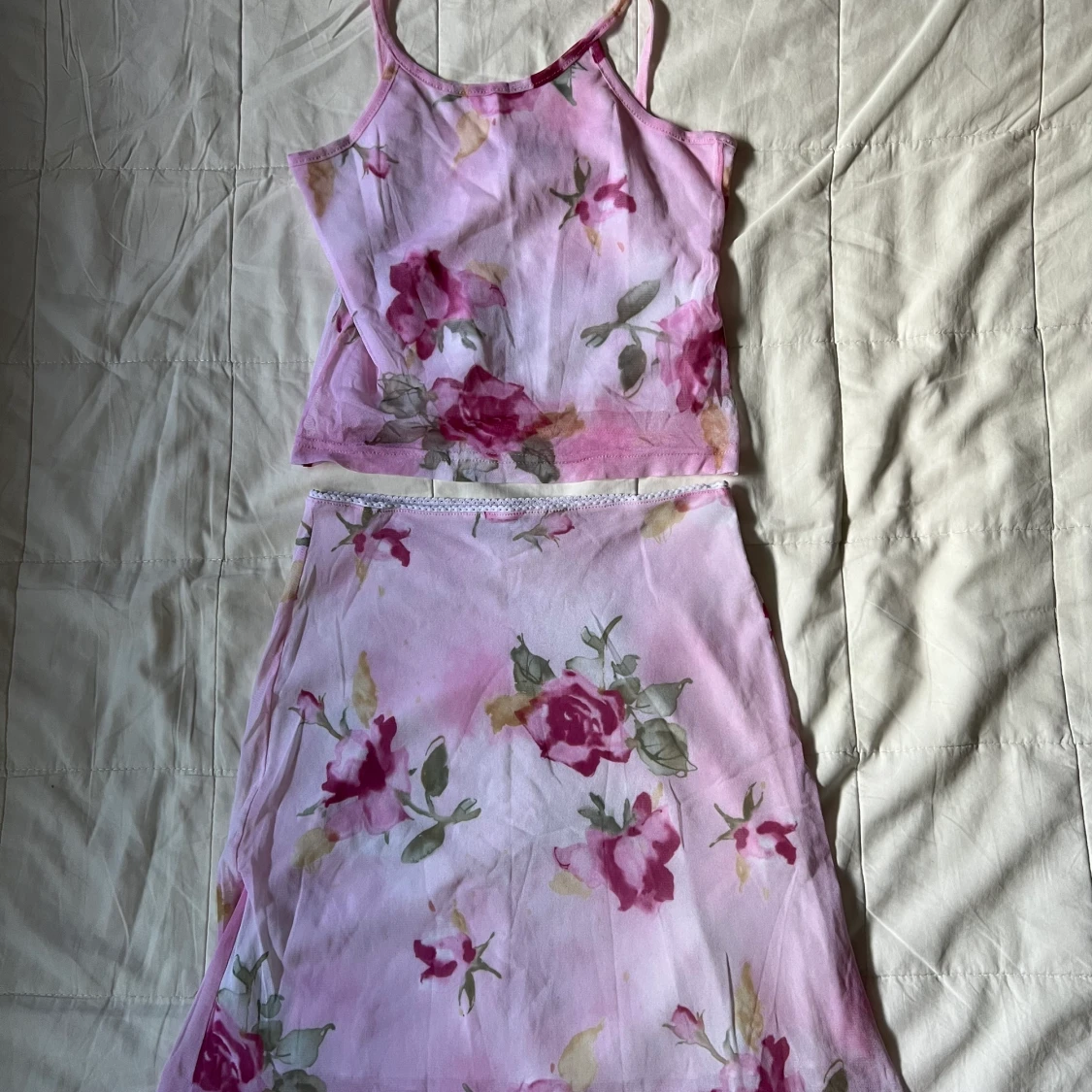Rosa set från JC med blommor på. Toppen är i storlek M och kjolen i L.