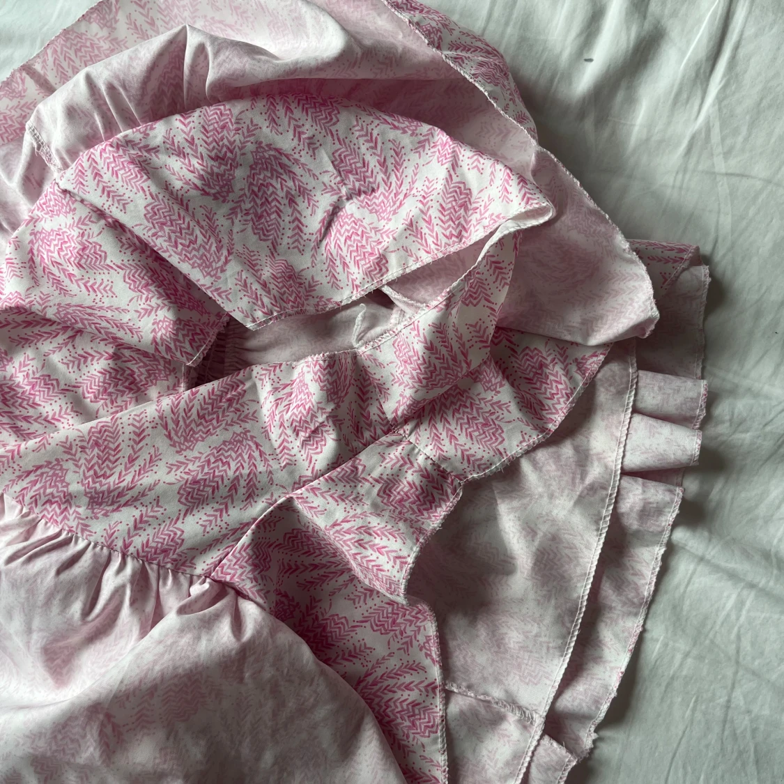 Supersöt kortkjol från MEET x TIGER i storlek S i ljusrosa och vitt med mönstrad design. Kjolen har bred smock i midjan med volanger. Den har även inbyggda shorts. Kommer inte till användning, köpt för 2 år sen och är i mycket bra skick då den inte använts mycket alls.