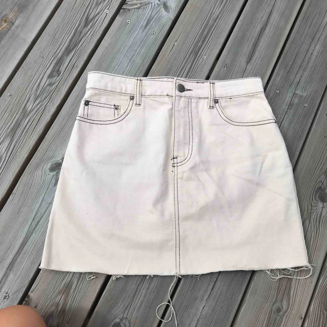 Snygg ljusrosa/ krämvit jeanskjol från Forever 21 med svarta sömmar🥰 Aldrig använd