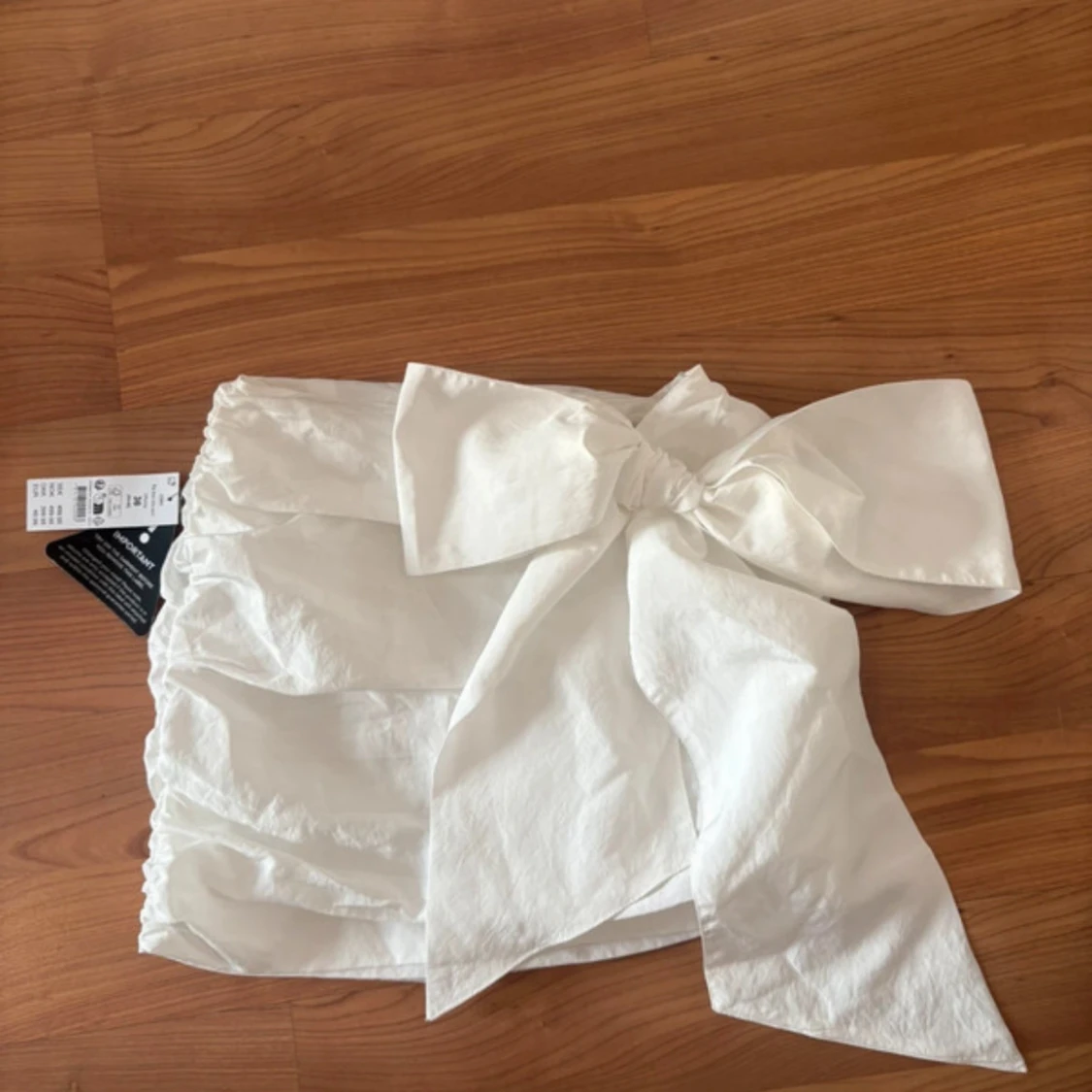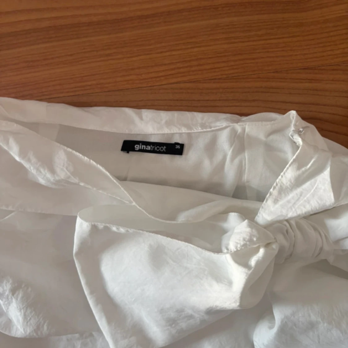 Sjukt snygg kjol från Gina Tricot🤩Stor rosett på sidan, har även en liten dragkedja på samma sida som rosetten som ej syns.❤️Alldrig använd, säljer pågrund av att den var för liten🙁