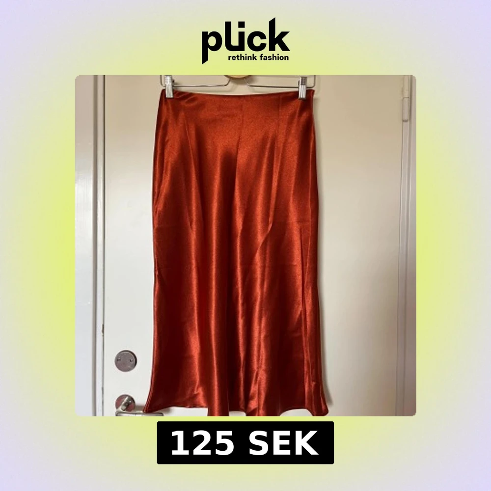 Snygg midikjol i skimrande rostfärgad/orange färg. Kjolen faller mjukt med en lätt utsvängd siluett. Dragkedja i sidan, midjemått 70 cm, passar s/m. Köpt second hand. Säljer en liknande i brunt också!
