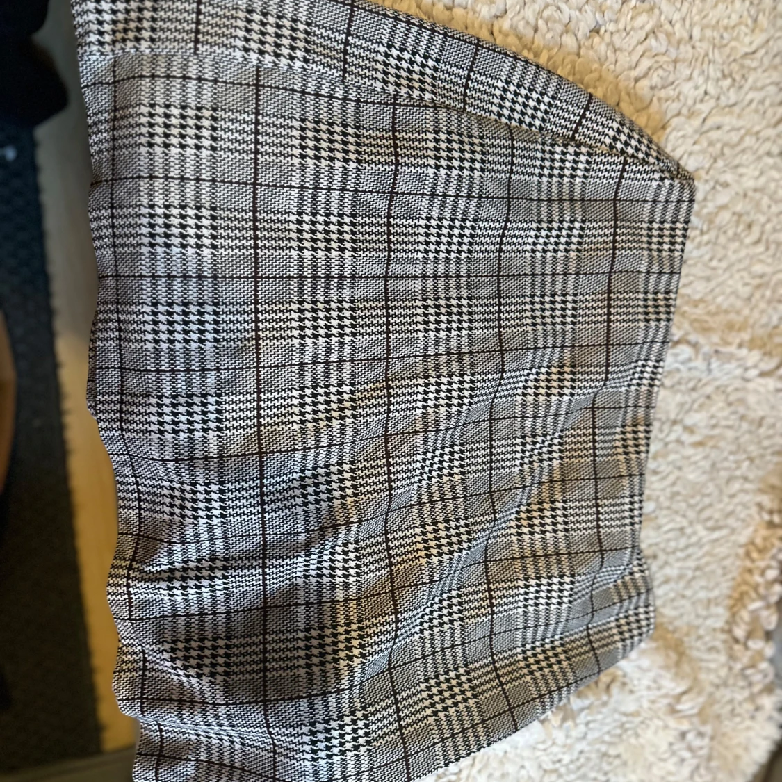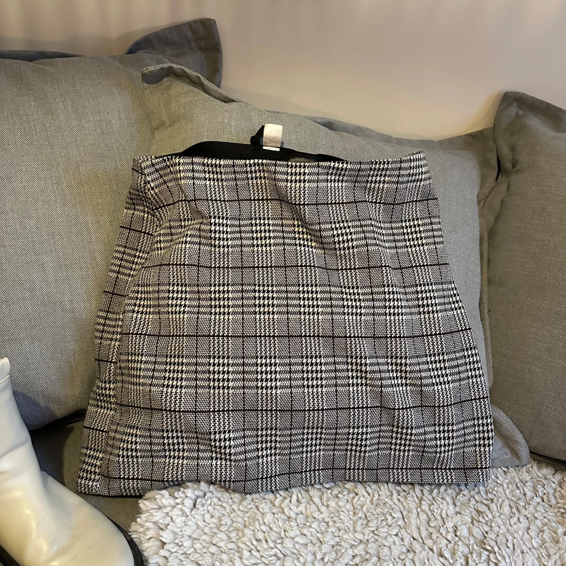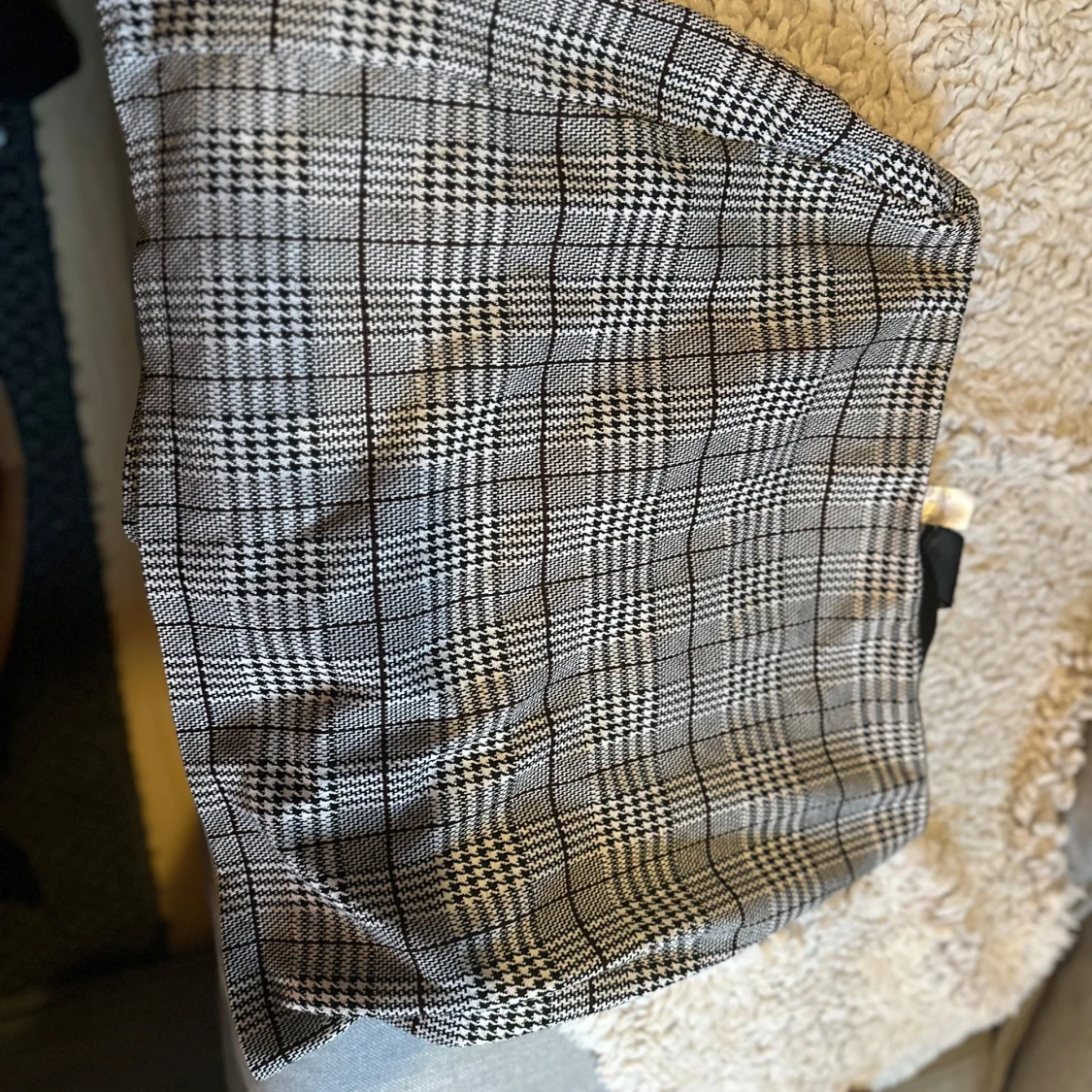 Snygg rutig kjol i svart och vit. Perfekt för både vardag och fest! Den har en klassisk passform och är i mycket bra skick. Kjolen är kort och passar perfekt till höst- och våroutfits.
