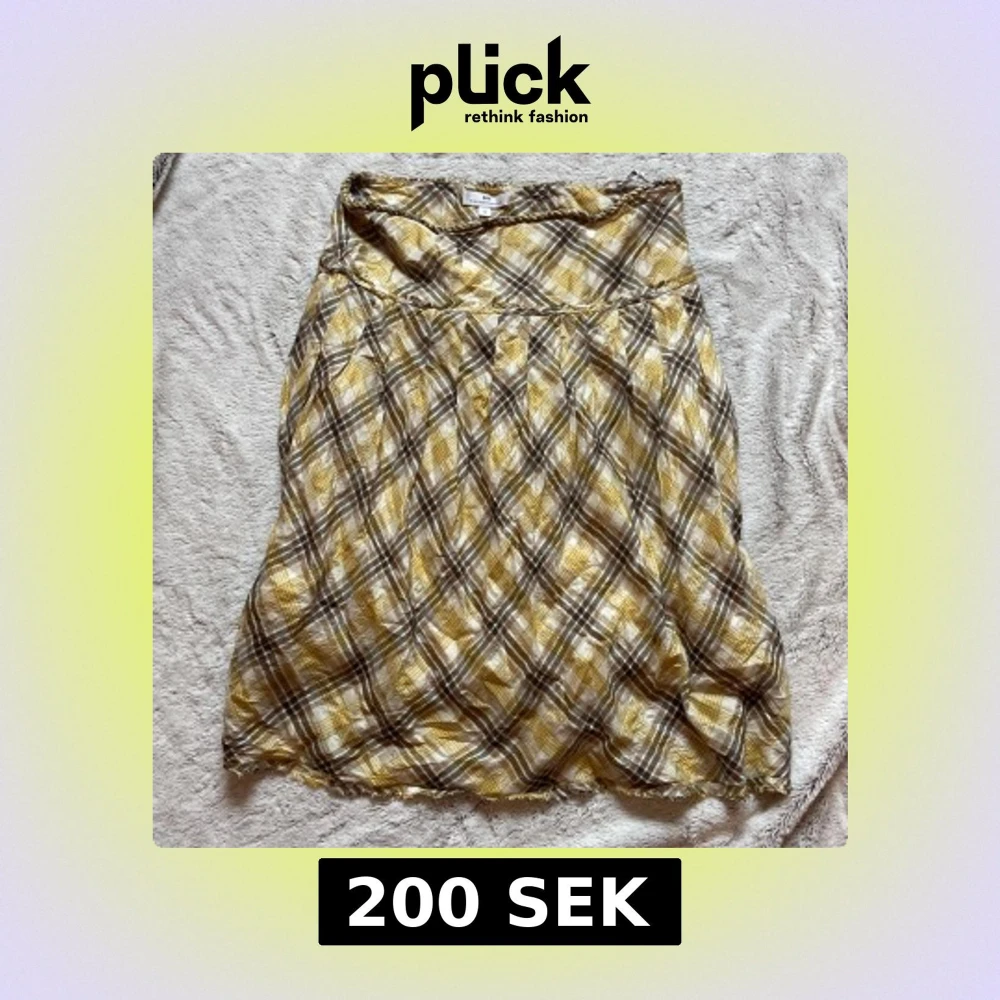 Säljer en somrig kjol från Day Birger et Mikkelsen i gult, beige och brunt rutigt mönster. Kjolen har en lätt A-linjeform och är tillverkad i ett tunt, mjukt material som ger ett avslappnat intryck💗