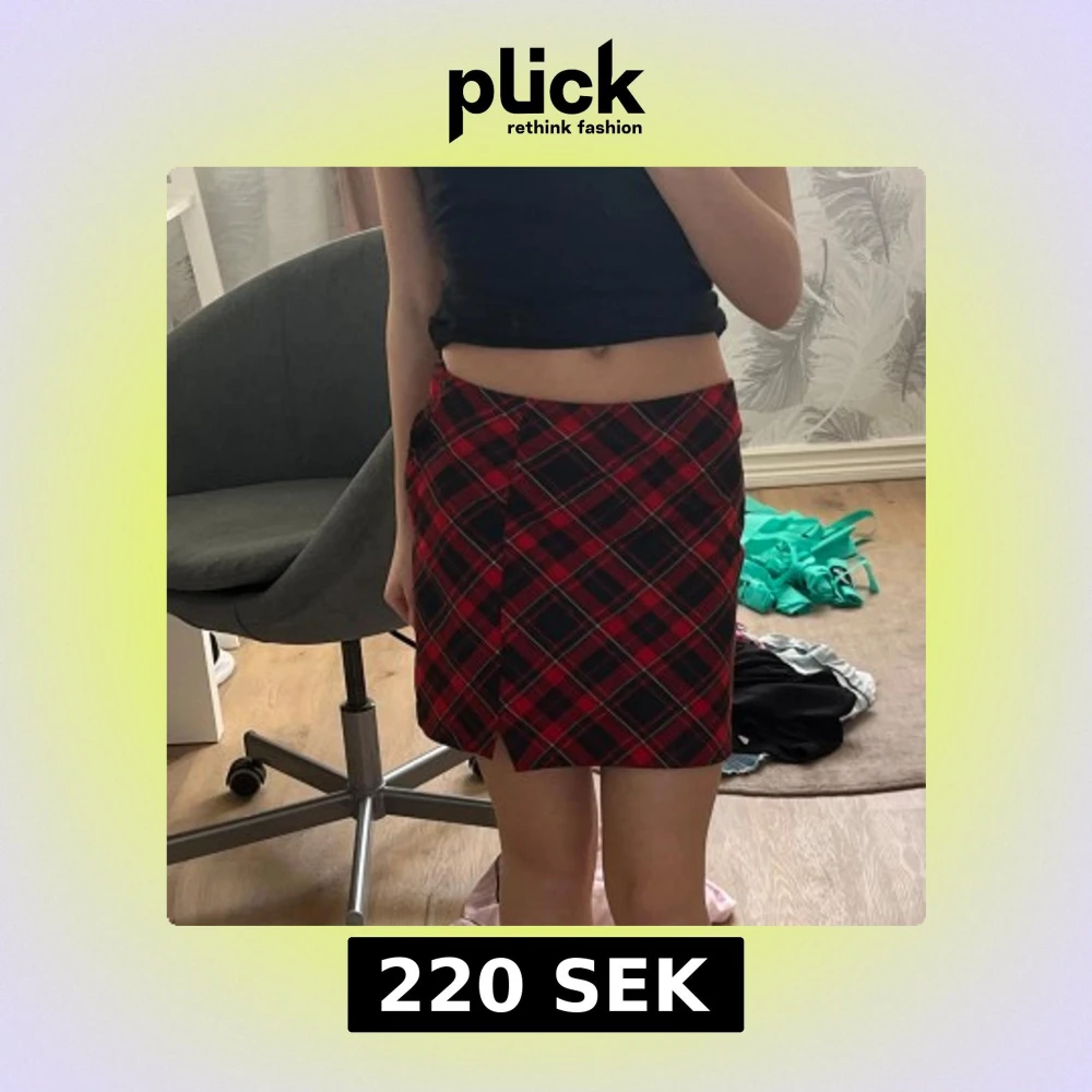 Snygg rutig kjol från H&M i rött och svart. Kjolen har en dragkedja och en knapp på sidan för att enkelt stänga den. Perfekt för en trendig look! Den kostade 300 kr när jag köpte den. Den är använd en gång så den är som ny skick. Den är super söt och jätte skön! 😍
