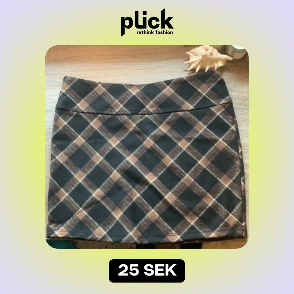 En kort rutig kjol från H&M Divided i färgerna svart, beige och brun. Kjolen har ett klassiskt rutmönster och är i storlek XXS.