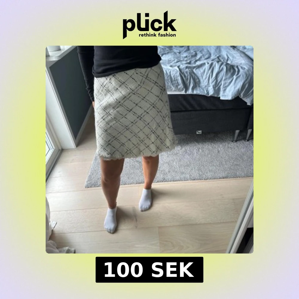 En rutig kjol som går till knäna ungefär. Ganska stor i storleken
