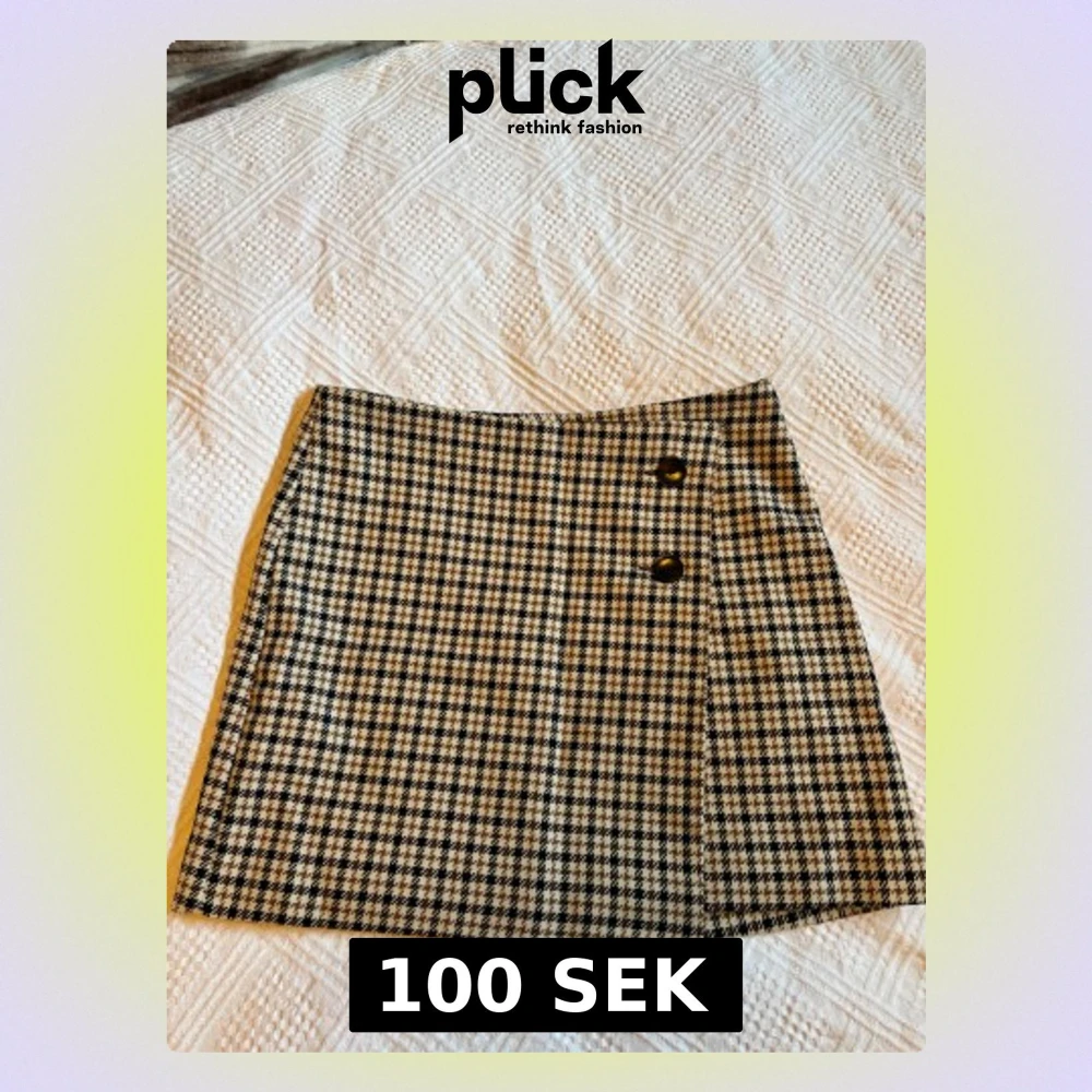 Superfin rutig kortkjol från H&M i svart, beige och brunt. Kjolen har två dekorativa knappar framtill och klassiskt rutmönster.