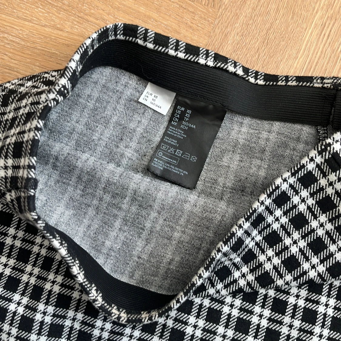 Stretchig med resårmidja. Längd: Mini