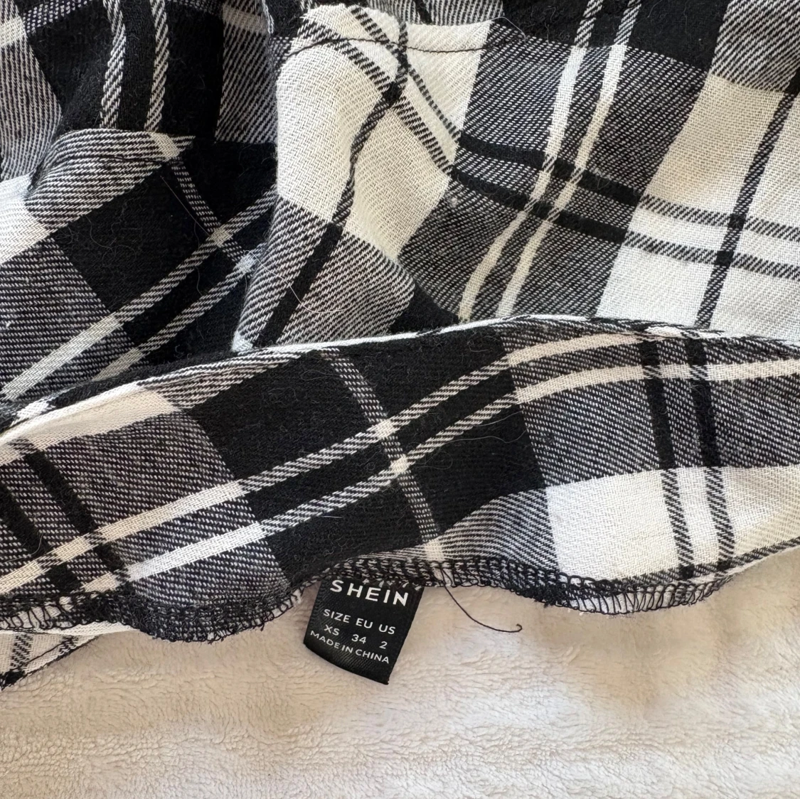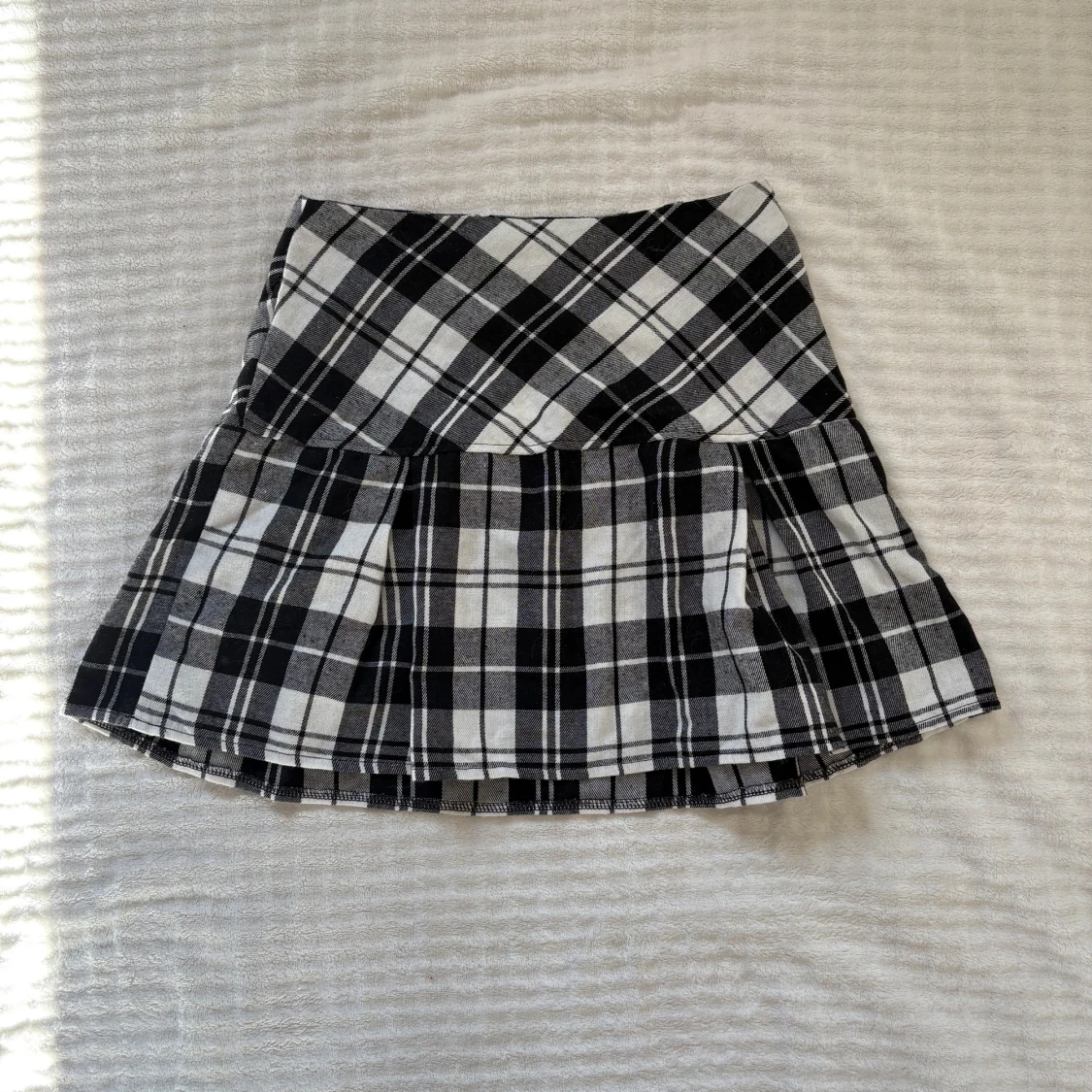 Supersnygg kort kjol från SHEIN i svartvitt rutigt mönster. Kjolen har en lätt utsvängd form och dragkedja i sidan för enkel påklädning. Perfekt för dig som gillar en preppy vibe och vill sticka ut lite extra.