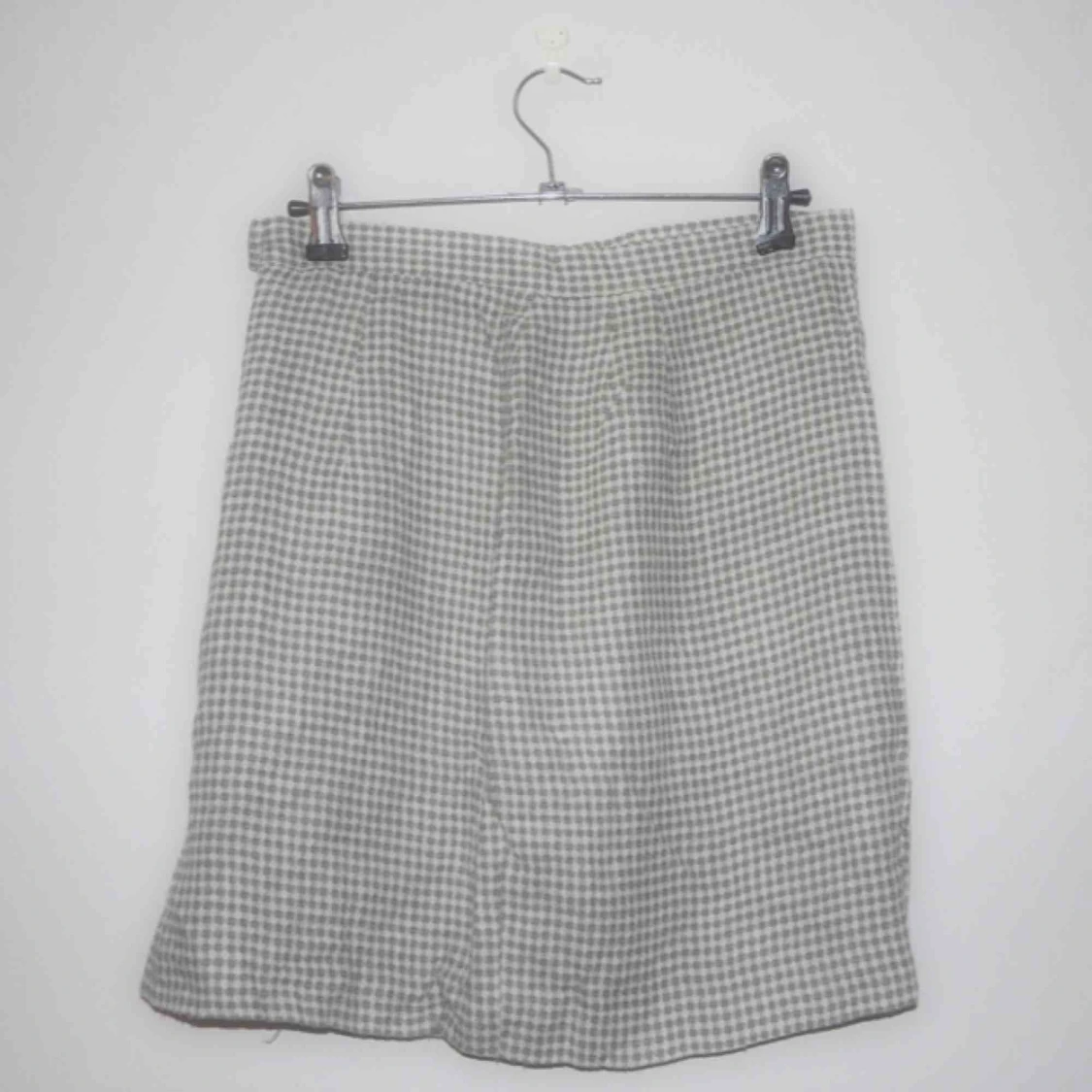 Ljusgrön och vit rutig vintage kjol i 65%viscose, 25%lin, 10%polyester. 72cm i midjemått och 45cm i längd. Knäpps i sidan med dragkedja och knapp. Köparen står för frakten på 56kr, kan även mötas upp på söder 🌸
