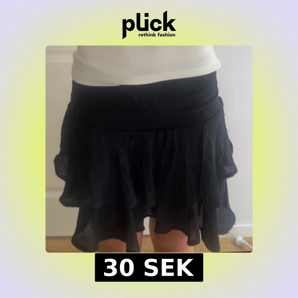 Supersöt svart kortkjol med volanger och bred resår i midjan.