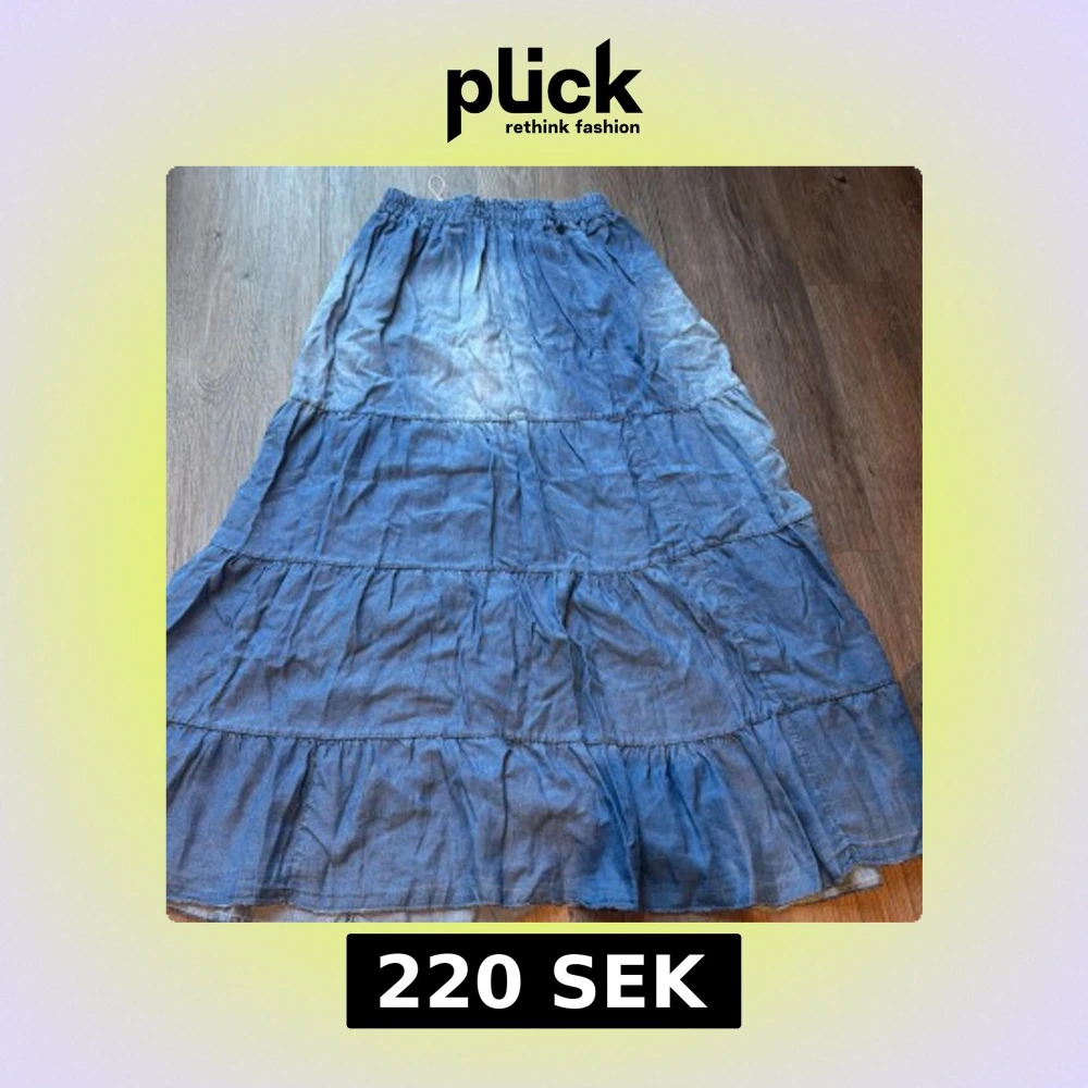 Säljer en blå långkjol med flera volanger och resår i midjan. Kjolen har en luftig och flowy känsla, perfekt för dig som gillar avslappnad stil. Materialet är mjukt och lätt, och färgen är en snygg denimblå ton.