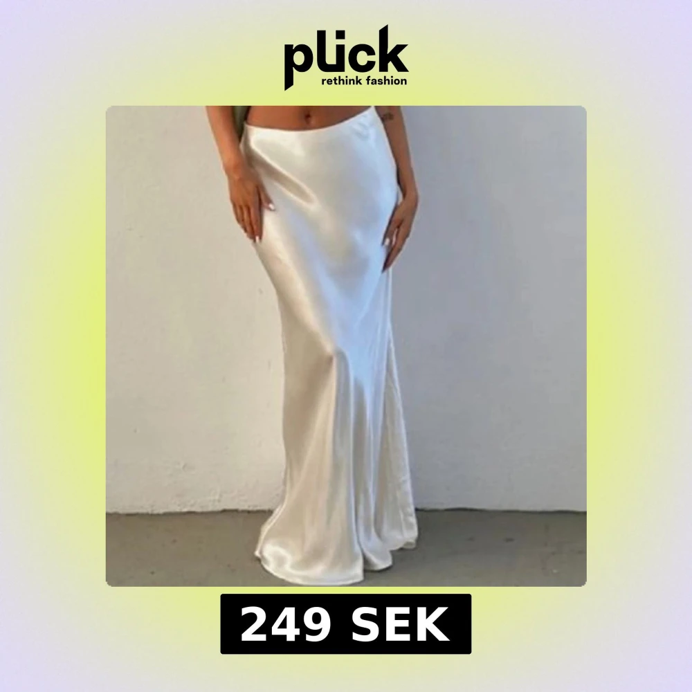 Elegant vit långkjol i sidenmaterial som ger en lyxig känsla. Perfekt för speciella tillfällen med sin släta och glänsande yta. Champagne färgad🥂