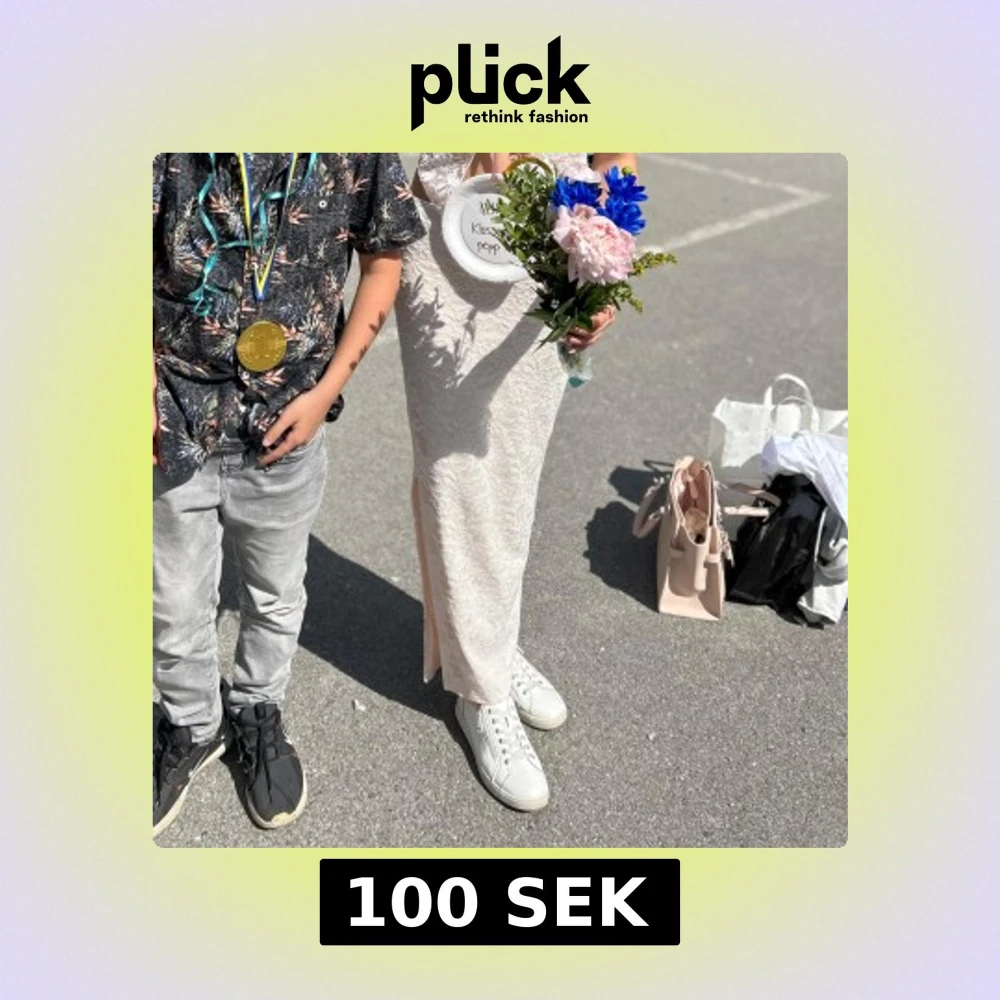 Superfin vit/begie långkjol med blommig spets och slits på sidan. Den har en elegant, figurnära passform. Perfekt för student eller sommarens speciella tillfällen. Finns också matchande linne till beroende på intresse!💓