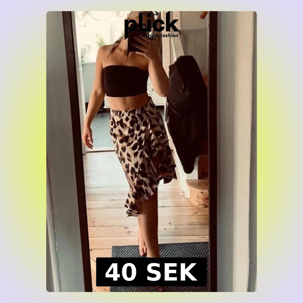 Säljer en snygg leopardmönstrad omlottkjol med volangkant. Kjolen har en beige bas med svarta och bruna fläckar och är i en luftig, flowy modell som slutar strax under knät. Perfekt för dig som vill sticka ut lite extra!