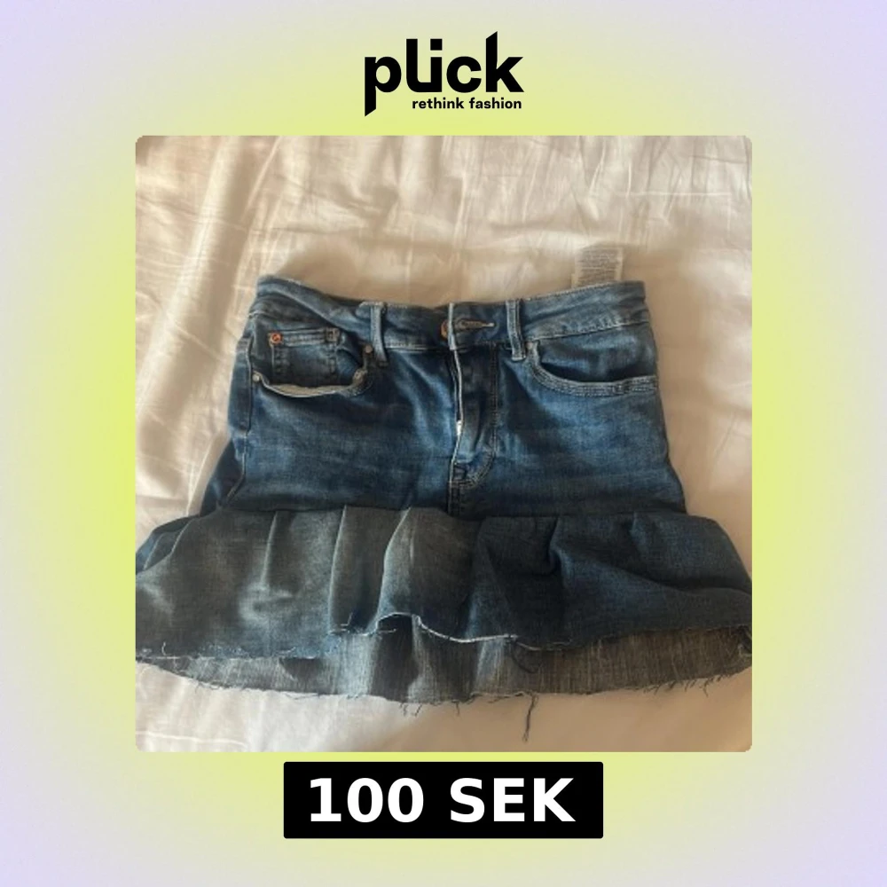 Snygg blå jeanskjol med volang längst ner. Jag har gjort kjolen själv och därför ingen exakt storlek men de passar mig som är S