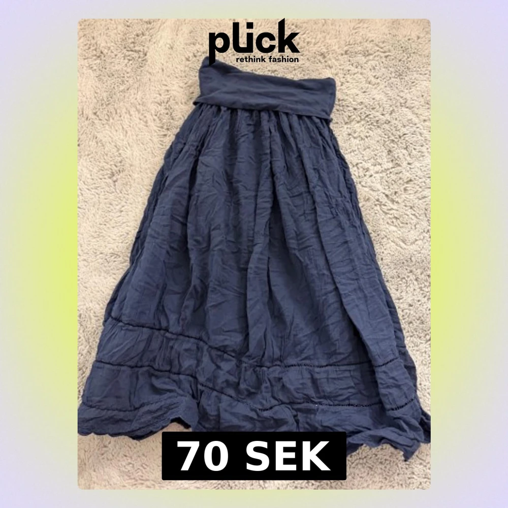 En mörkblå långkjol som även kan användas till en luftig klänning. Köpt på en marknad och vet inte storlek eller märke. Använd ca. En gång.💙