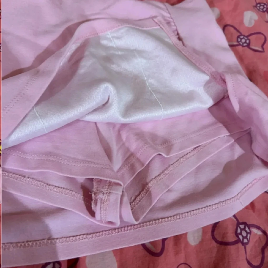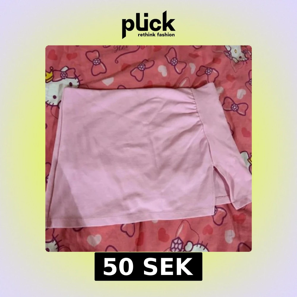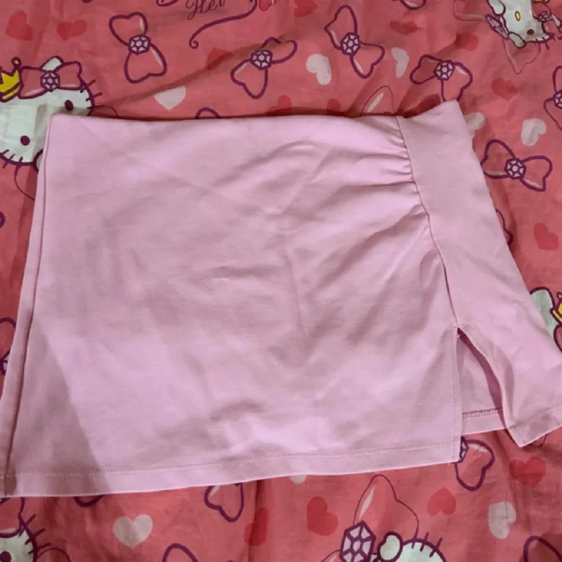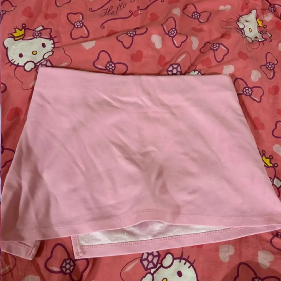 Supersöt ljusrosa kortkjol i mjuk bomull med en liten slits på sidan. Kjolen har inbyggda shorts och inga tecken på användning