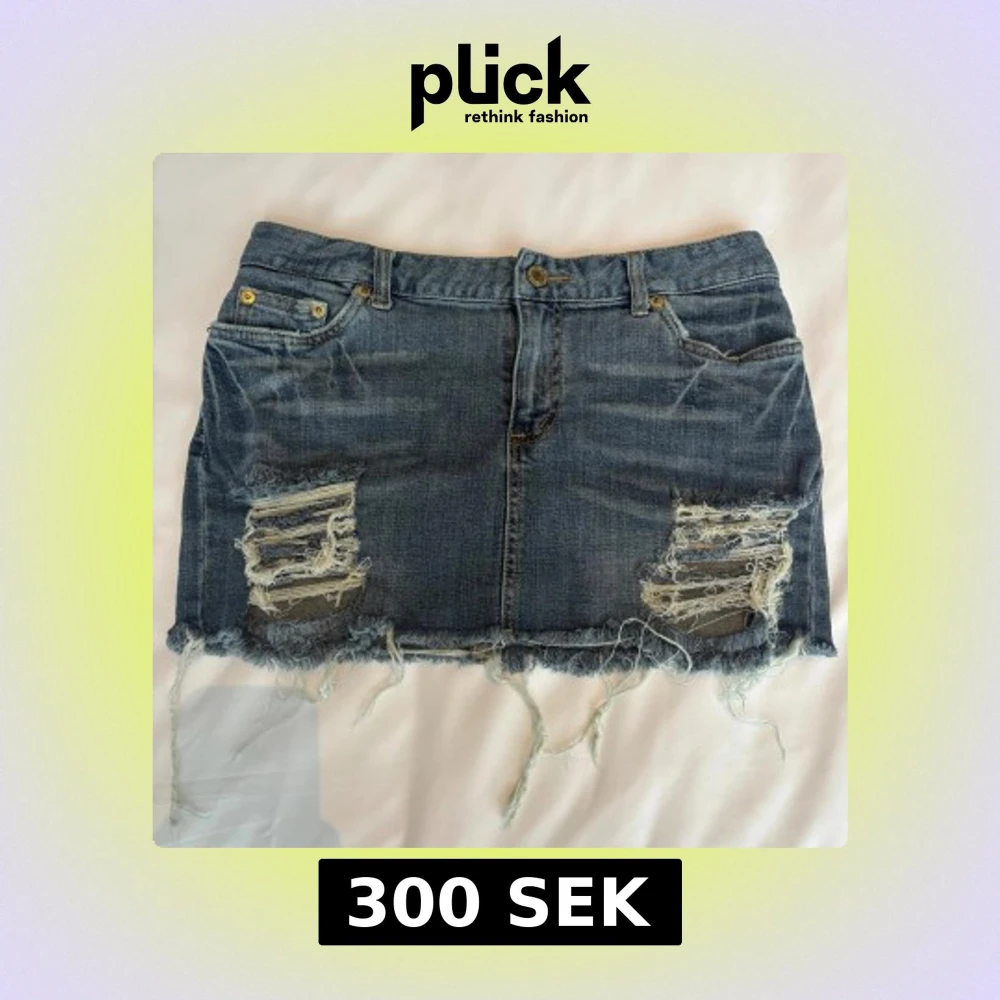 Trendig blå jeanskjol från Coloring-gem med slitna detaljer och fransig nederkant. Klassisk femficksmodell med dragkedja och knapp framtill. Snyggt trasiga partier framtill ger en cool vibe. Perfekt för dig som gillar en edgy och avslappnad stil. Står ej storlek, jag har S