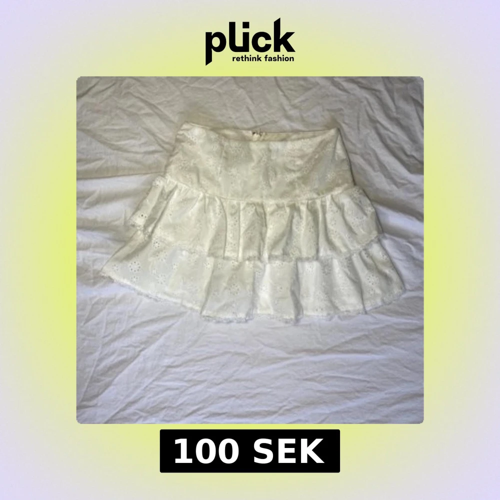 Charmig vit kjol med volanger och spetsdetaljer. Perfekt för en somrig look. Kjolen har en kort längd och en dragkedja baktill för enkel påklädning.