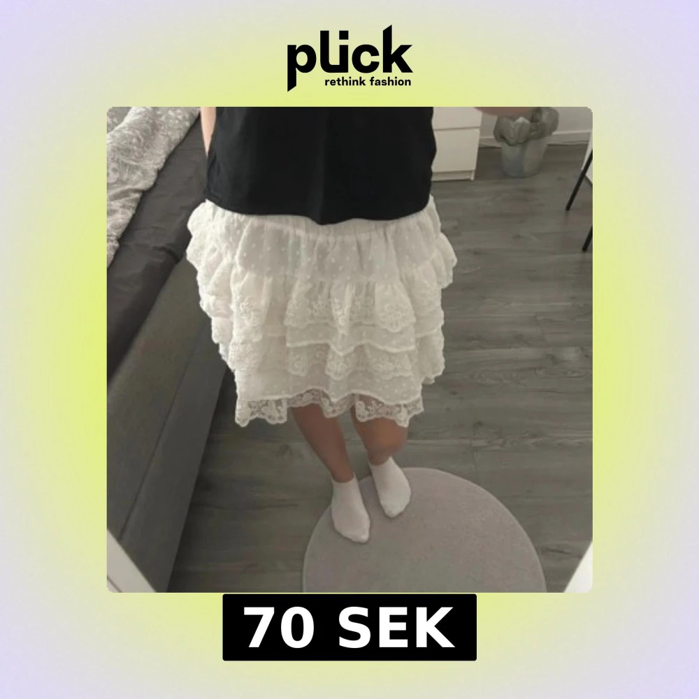 snygg vit kjol med spets och volang. knappt använd