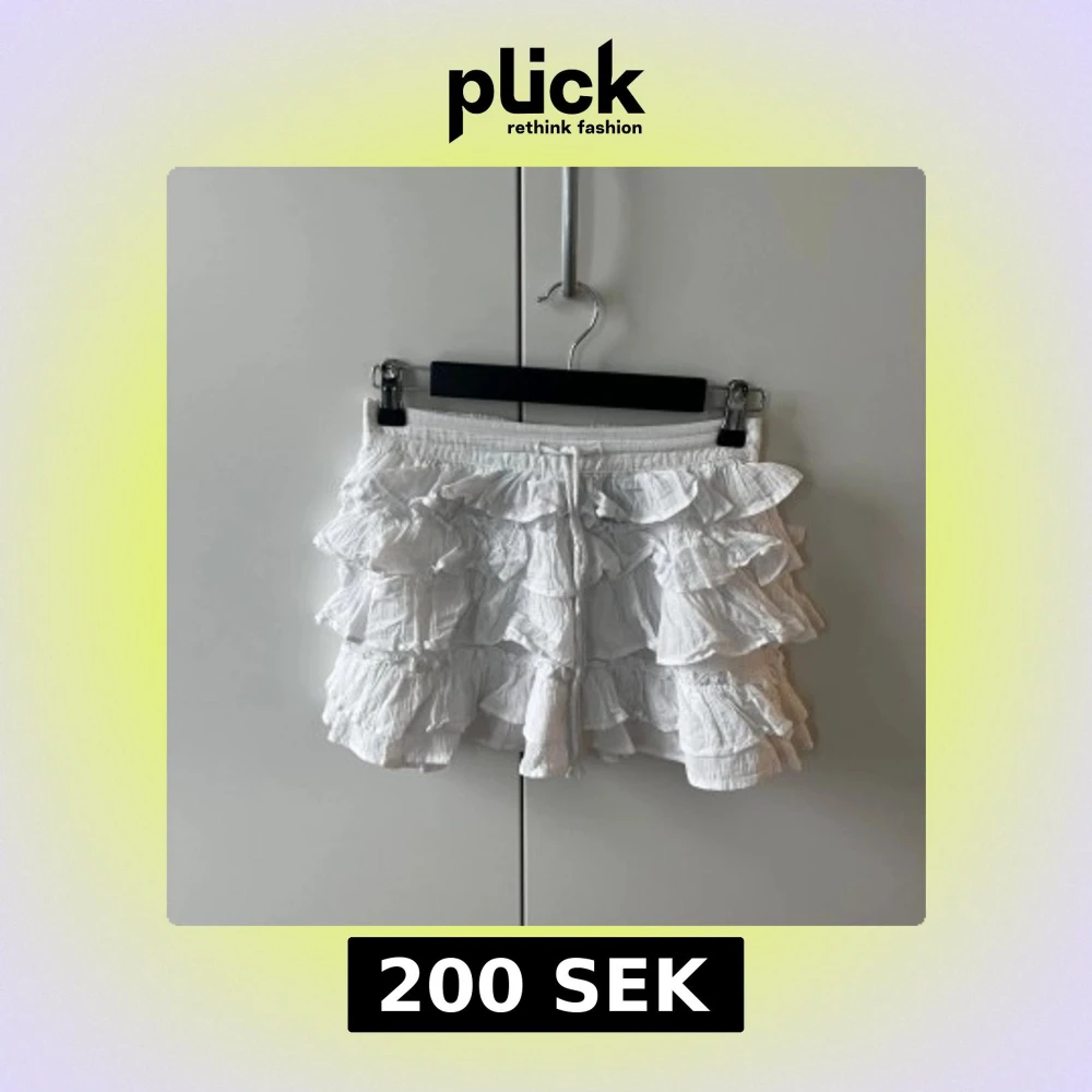 Säljer en vit minikjol med flera lager volanger. Storlek S. Använd fåtal gånger.